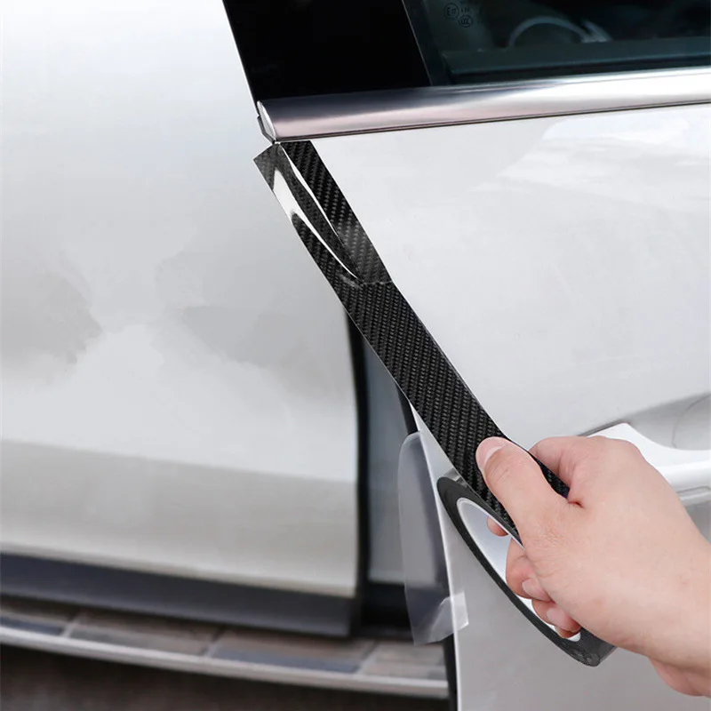 Автомобильная наклейка на порог из углеродного волокна, полоса для защиты двери автомобиля от царапин, защитная пленка, универсальная Накладка на порог двери