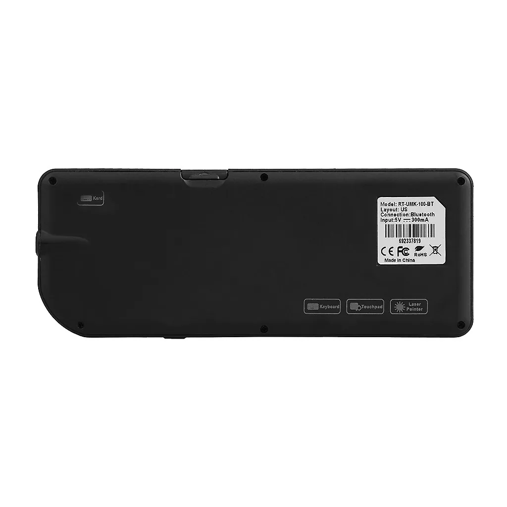 Клавиатура Объем (Д) 15,1 * (Ш) 5,9 * (в) 1,25 см Цветная коробка Объем (Д) 18,4 * (Ш) 9,2 * (в) 4,2 см Цвет: Черный Мощность Встроенный литиевый аккумулятор Материал Абс + силикон Зарядка 3,5 ~ 4 часа Режим ожидания 500 ~ 700 часовПосылка включает: