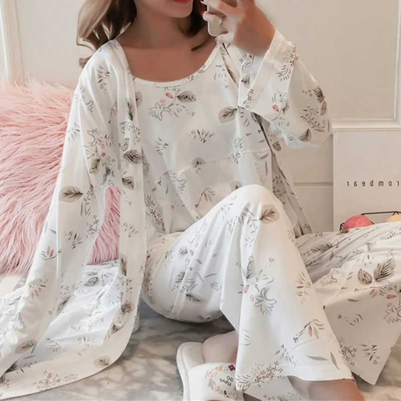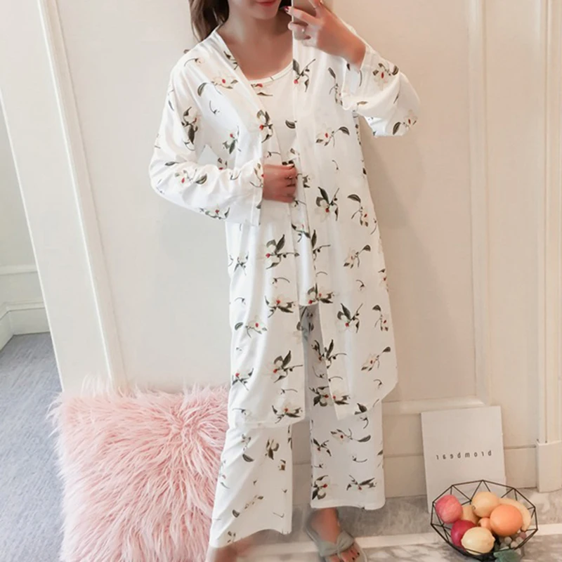 JODIMITTY женская пижама с коротким рукавом из 3 предметов с длинным рукавом твердых атласная пижама шелковая Домашняя одежда вышивка гостиная сна Пижама пижамный комплект, ночное белье.