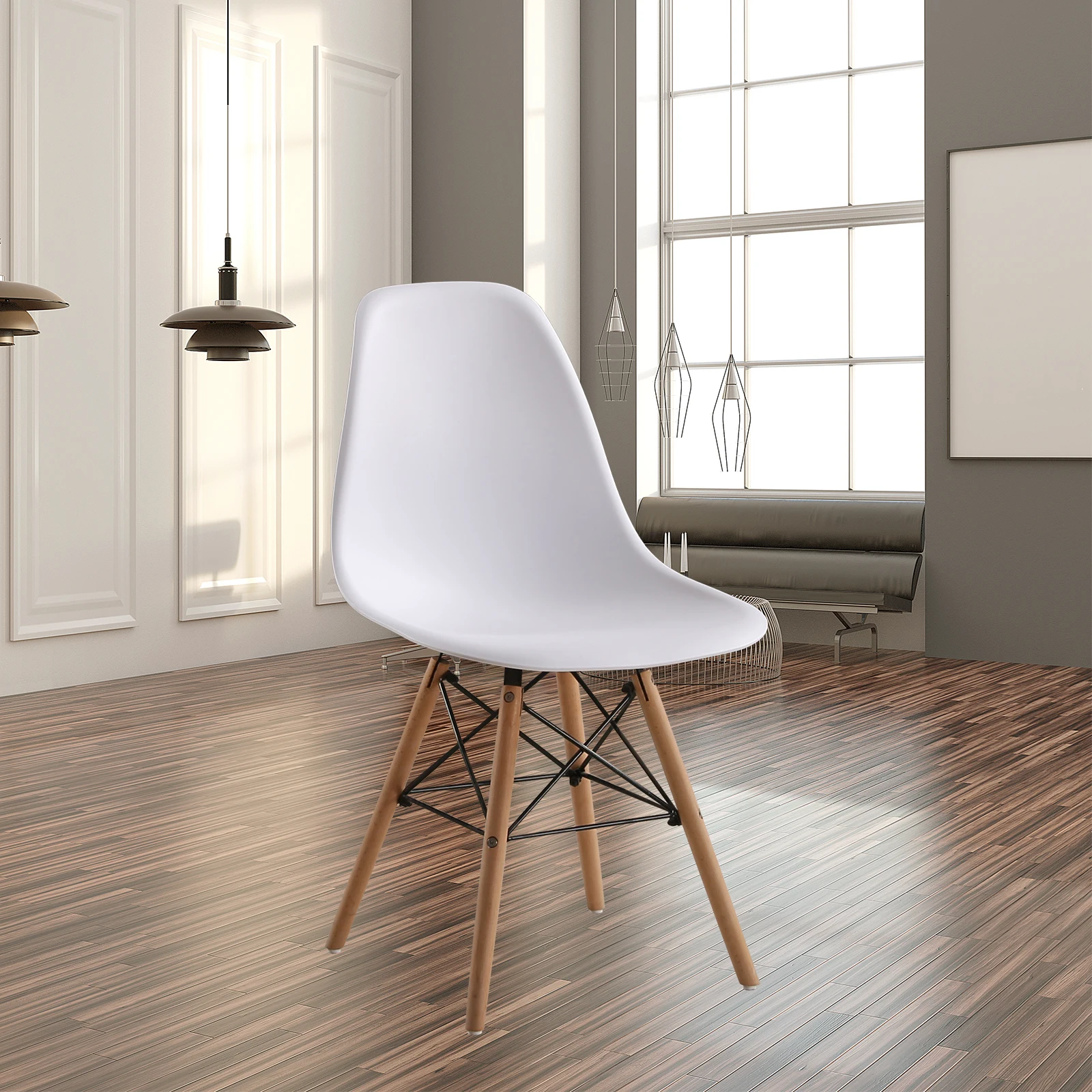 Эти безупречные белые безрукавные сиденья-прекрасный пример современного и крепкого дивана-стула с деревянными ножками и проводами. Такое сиденье может быть идеально интегрировано в различные темы дизайна интерьера.