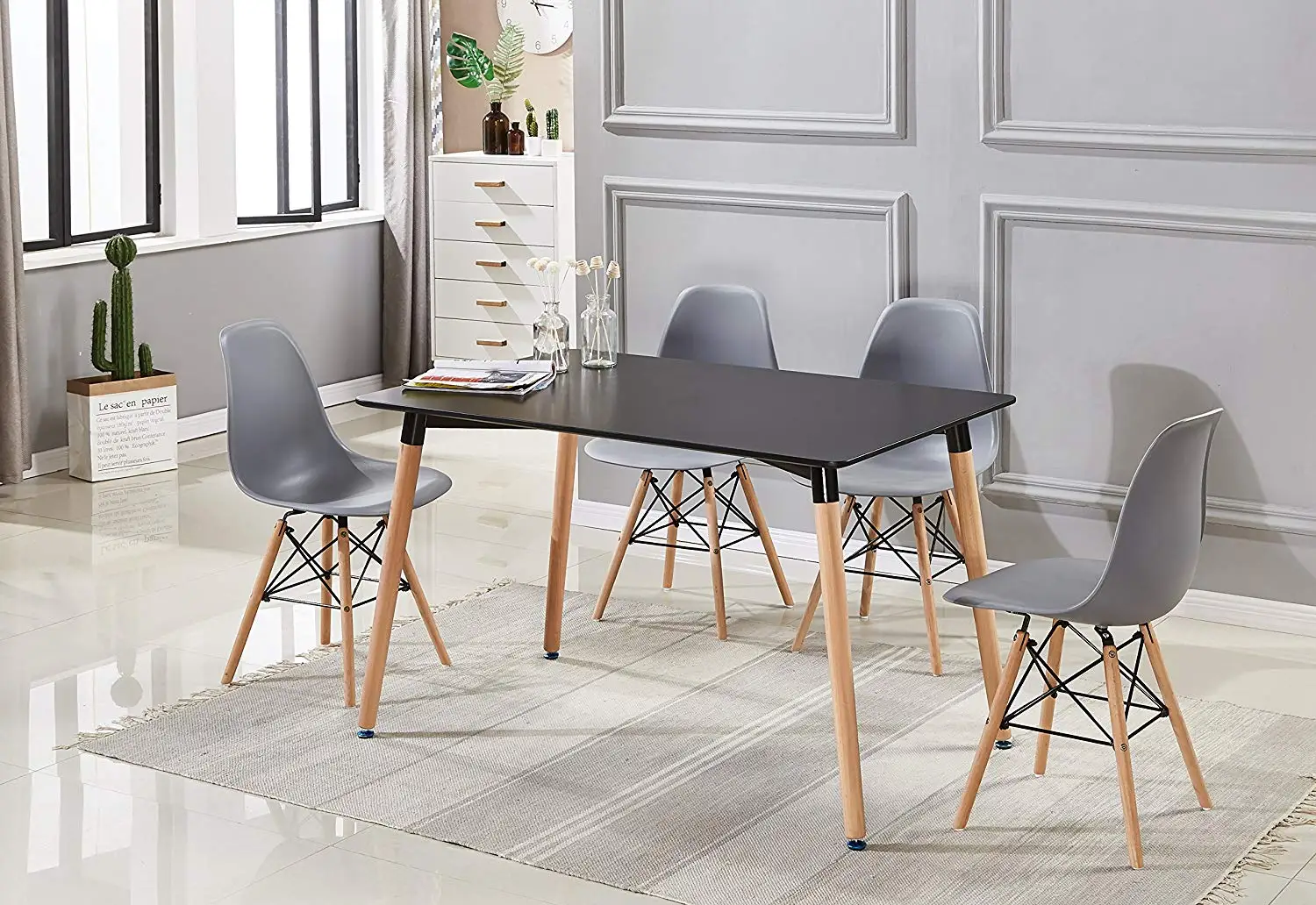 Набор из четырех современных средневековых обеденных стульев с ножками из бука и прочной металлической рамой для столовой, кухни, спальни, легко собрать и очистить (белый/черный/серый)