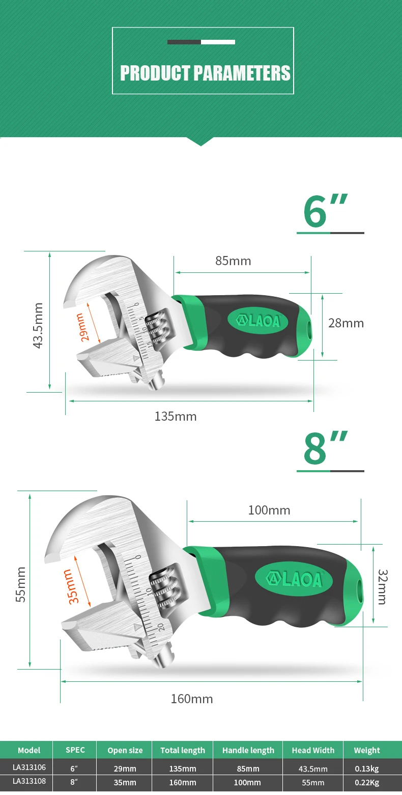 LAOA регулируемый гаечный ключ, многофункциональная короткая ручка, большой открытый живой ключ, маленький мини-гаечный ключ для ванной