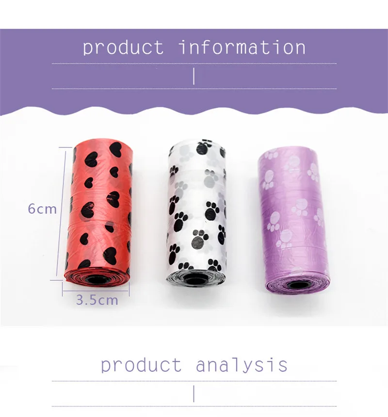 Название продукта: мешок для мусора с мультяшным принтом для домашних животных Материал: полипропилен Цвет: Случайный Размеры: длина 6 см, диаметр 3,5 см; В разложенном виде 28 см X 21 см