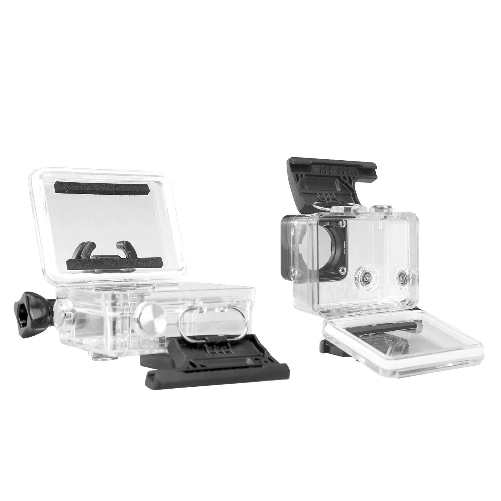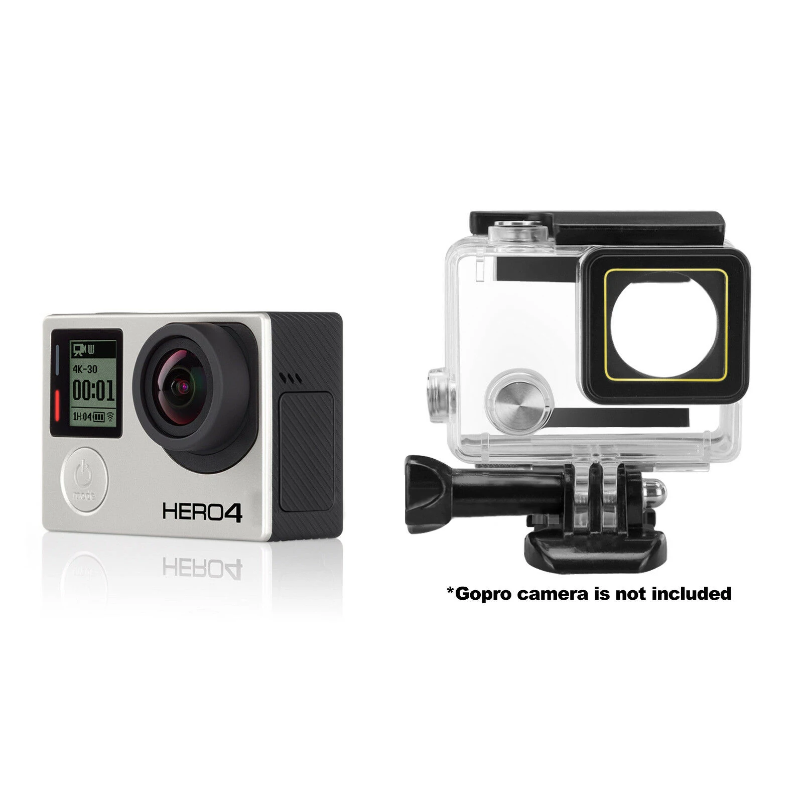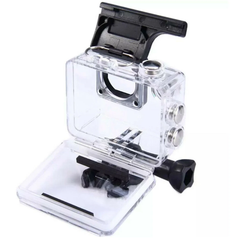 Совместим с GoPro HD HERO4 \ HERO3 + \ HERO3 Материал: пластик и металл Цвет: черный и прозрачный Водонепроницаемость до 35-40 мин. Он не совместим с Gopro 4 с ЖК-экраном