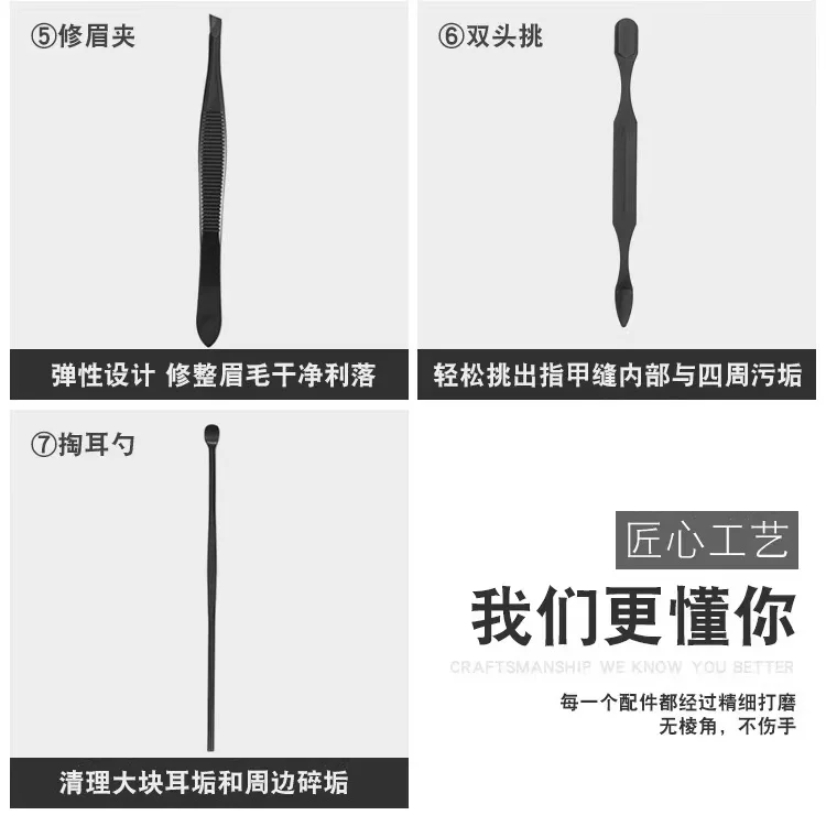 Здравствуйте! Добро пожаловать в наш магазин! Маникюрный набор, набор инструментов для дизайна ногтей, украшения, профессиональные аксессуары, машинка для стрижки ногтей, пилочка для кутикулы, 7 шт. в наборе Изготовлено из высококачественной черной нержавеющей стали, с высококачественной сумкой из искусственной кожи и портативным дизайном, подходит для путешествий и путешествий, для семьи и семьи, лучшие подарки друзьям Посылка включает в себя: 1 кусачки для ногтей, 1 косая Кусачка для ногтей, 1 заколка для бровей, 1 Ушная палочка, 1 пилочка для ногтей, 1 двойная насадка, 1 ножницы для бровей