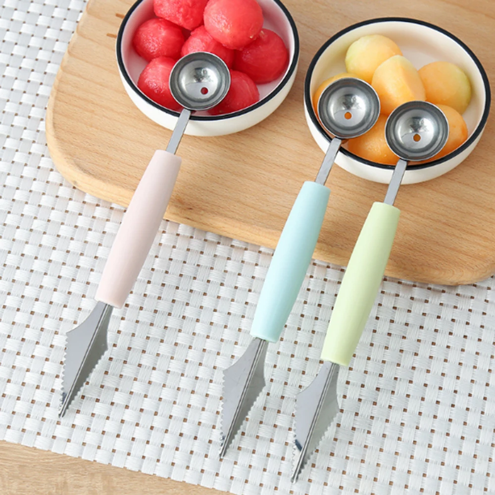 Лучшая помощь в создании и красивых DIY фруктовых тарелок с двойным нарезом фруктов инструменты, гофрированный боковой резной нож, сделать причудливую резку, нержавеющая сталь Сторона копать мяч, мяч может копать фрукты, легко есть фрукты.