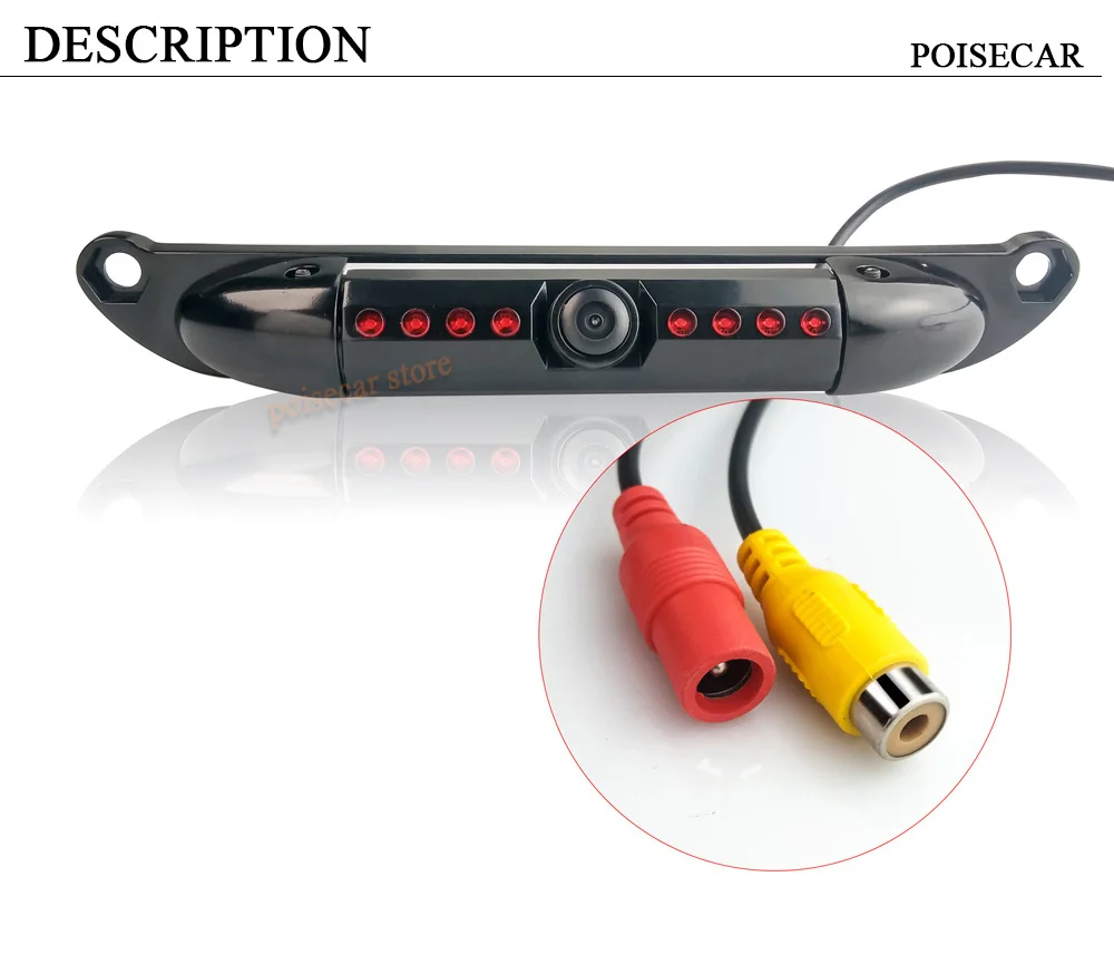 Датчик изображения: CMOS Угол Линзы: 170 градусов (от Ближнего до дальнего). Эффективные пиксели: 800*480 пикселей. Горизонтальное Разрешение: 420 ТВ-линий. Минимальное освещение: 1LUX/F1.2 Напряжение: 12 В Мощность: 0,6 W Рабочая температура: -20-70 ℃ Максимальная влажность: RH95 % Водонепроницаемость: IP67 Угол обзора: 170 ° Формат видео: NTSC/PAL Видеовыход: 1.0VP-P,750HM Гамма: 0,45 Применение: автомобиль сша Функция: с ночным видением (инфракрасный) Длина кабеля питания: 1 м Длина видеокабеля: 6 м