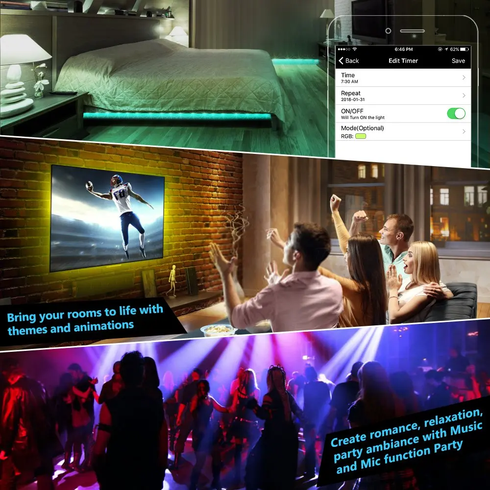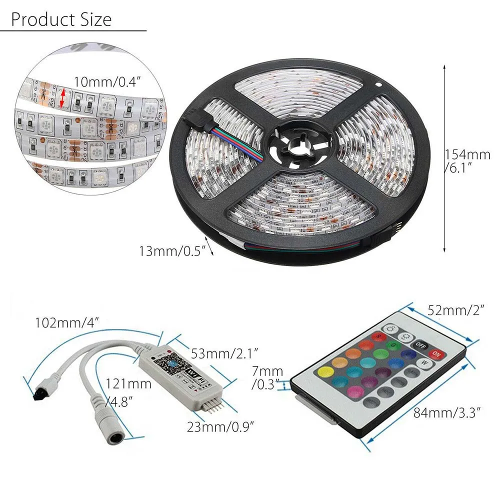 Светодиодный светильник s WiFi беспроводной смарт-телефон с управлением 16,4 фута водонепроницаемый светильник LED комплект 5050 Светодиодный светильник s работает с системой Android и iOS Alexa Google Assistant