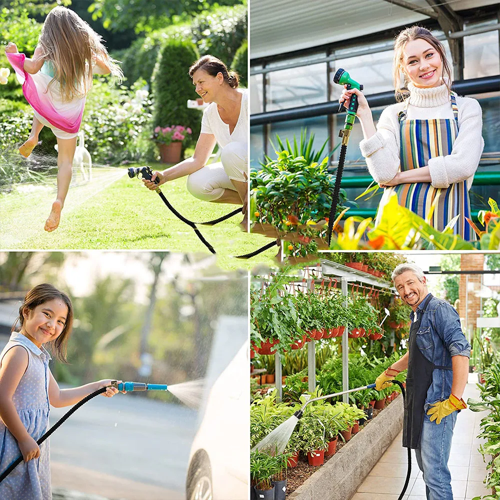 Сделать полив простым и эффективным с помощью водяного шланга: Мы сконструировали и изготовили шланг, который использовал только высококачественные, прочные, современные материалы, сделали его довольно функциональным, легким, гибкий и достаточно длинный, чтобы сделать его легким и удобным для использования вокруг сада, даже когда он полон воды Невероятная долговечность-больше нет утечек, разрывов и трещин: Твердые Латунные разъемы 3/4 дюйма, резиновая шайба, двойная латексная труба, прочный клапан вкл/выкл, сверхгибкий чехол из полиэфирной ткани 3750D; шланг может выдерживать давление воды 3-12 бар и температуру 5 ℃-45 ℃-этот садовый шланг для длительного использования Гибкий дизайн-расширяемый шланг начинается с 34 футов; Когда вода включена, шланг быстро расширяется до 3 раз в длину (100 футов) С давлением воды (3-12 бар) и возврат в течение нескольких минут до оригинальной длины, когда вода выключена. Просто убедитесь, что есть достаточно давления воды, чтобы расширить шланг Подходит для большинства домов-расширяемый садовый шланг отлично подходит для 40-80psi, что является стандартным давлением воды в жилых домах. Если ваше давление воды ниже, чем стандартный диапазон США, может быть ситуация, когда у вас нет достаточно давления, чтобы вызвать полное расширение шланга