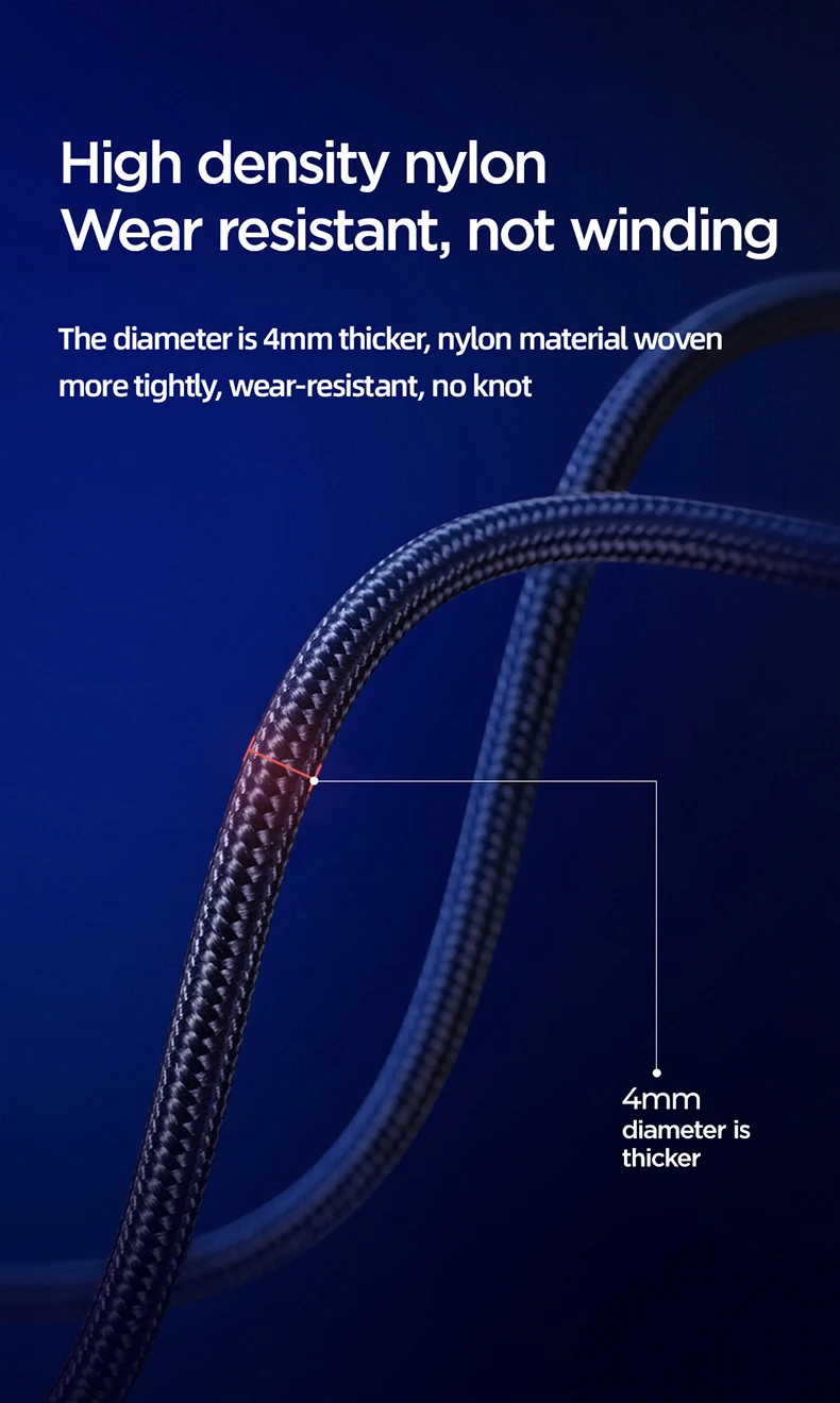 1. Выдерживает вес 300 г 5000 раз испытание на высокое качание 2. Интерфейс может выдерживать вес 8 кг 3. Ток старения составляет 2,4 А в течение более двух часов, температура не превышает 50 градусов, а высокая и низкая температура 48 часов испытания на удар, что решает проблему горячего интерфейса и падения оболочки. 4,162 штук луженой медной проволоки ядро формируя Мягкий Нейлоновый плетеный провод 3A высокой токовой зарядки