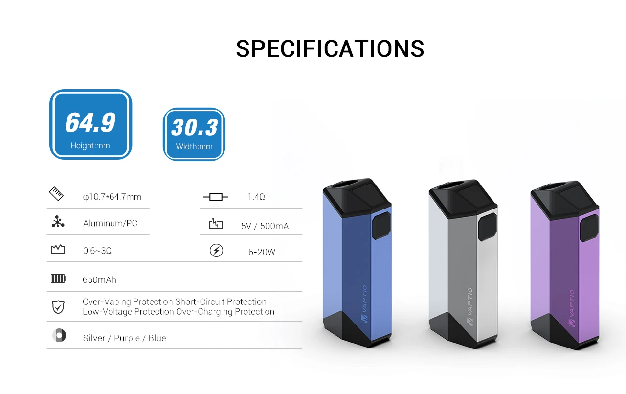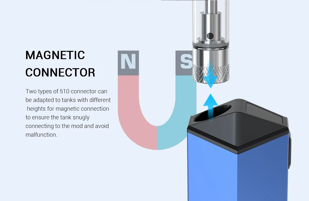 -COMPACT AND PORTABLE -POWERFUL CAPACITY BATTERY -PRE-HEATING FUNCTION -MAGNETIC CONNECTOR -FOUR POWER MODES -COMPATIBLE WITH ANY E-JUICES