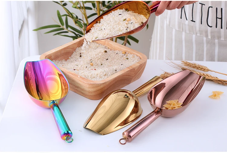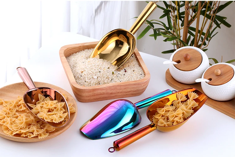 9.8inch Stainless Steel Gold Ice Scraper Dry Food Flour Candy Bin Spice Scoop Buffet Shovel Wedding Bar Party Kitchen Tools