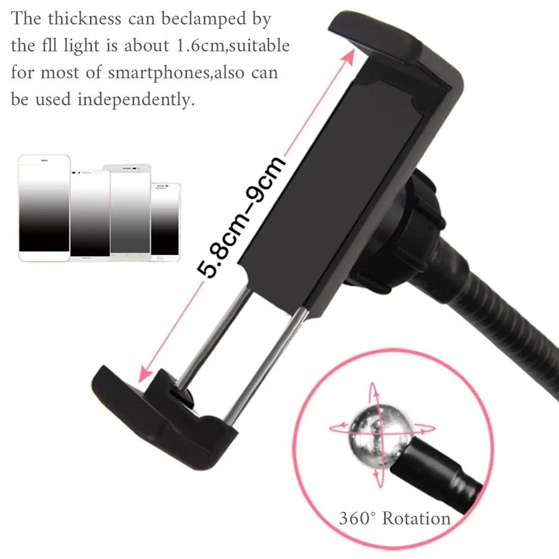 Большая всасывающая база для стабильного крепления без колебаний, плотно прилегающая и гнущаяся рукоятка, надежно фиксирует ваш смартфон и другие электронные устройства, чтобы предотвратить падение или перемещение устройства; Высококачественный алюминиево-магниевый сплав; гибкая рукоятка для разных углов и расстояний, Изготовлен из высококачественного алюминиево-магниевого сплава, подходит для просмотра телефона и прослушивания музыки и телефонных игр на кровати, столе, машине, рядом с диваном, тренировочным оборудованием и т. д. Универсальный держатель для мобильных телефонов, планшет, iPhone, Samsung Galaxy и т. Д. Подходит для телефонов 4-10 дюймов и ipad