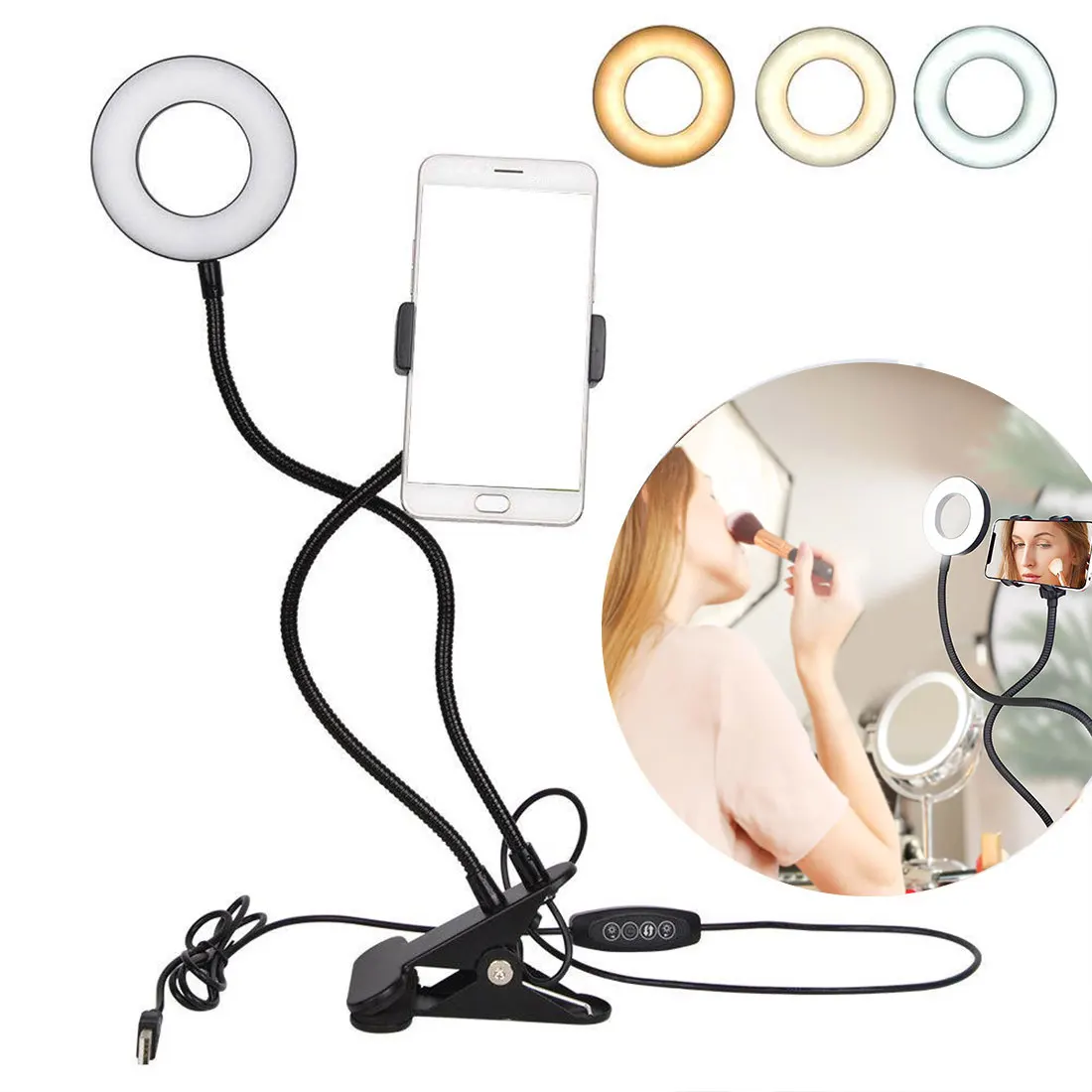 Светодиодная кольцевая лампа для селфи в фотостудии с держателем для мобильного телефона для Youtube, лампа для макияжа в реальном времени для iPhone Android