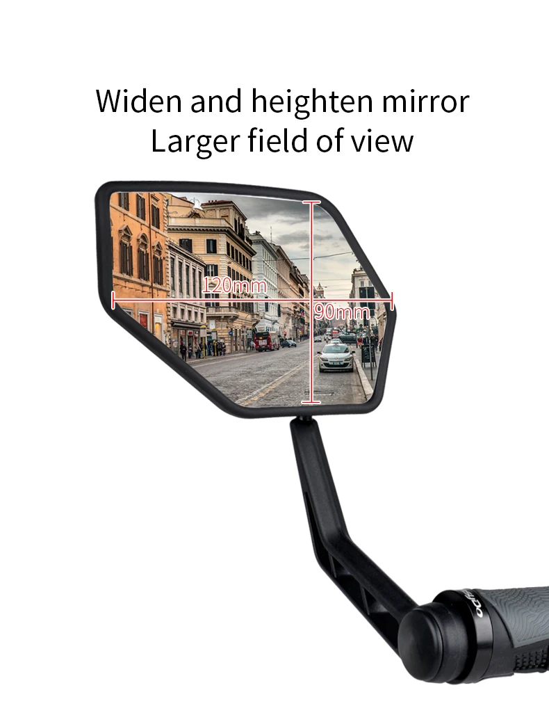-Конструкция разъема, вид сзади шире и четче. -Мульти регулировка угла -Фиксация конца руля, более широкий обзор. -Увеличенное зеркало -Может быть установлен в нескольких транспортных средствах.(e велосипед, складной велосипед, битые горки, пригородный велосипед и т. Д.)