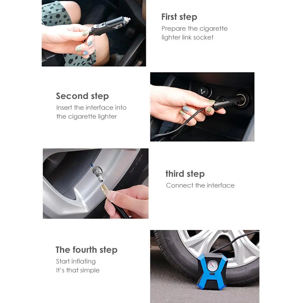 1. Удобный в использовании: Просто подключите его к розетке 12 В автомобиля и подключите шланг к шине, чтобы надуть ваши автомобильные шины сразу.Надувной насос * 1