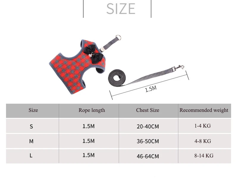 1,5 м галстук-бабочка с колокольчиком цепь для собак кошка маленькая плюшевая собака щенок жилет Тяговая веревка поводок для собак поводок для домашних животных ошейник для домашних животных