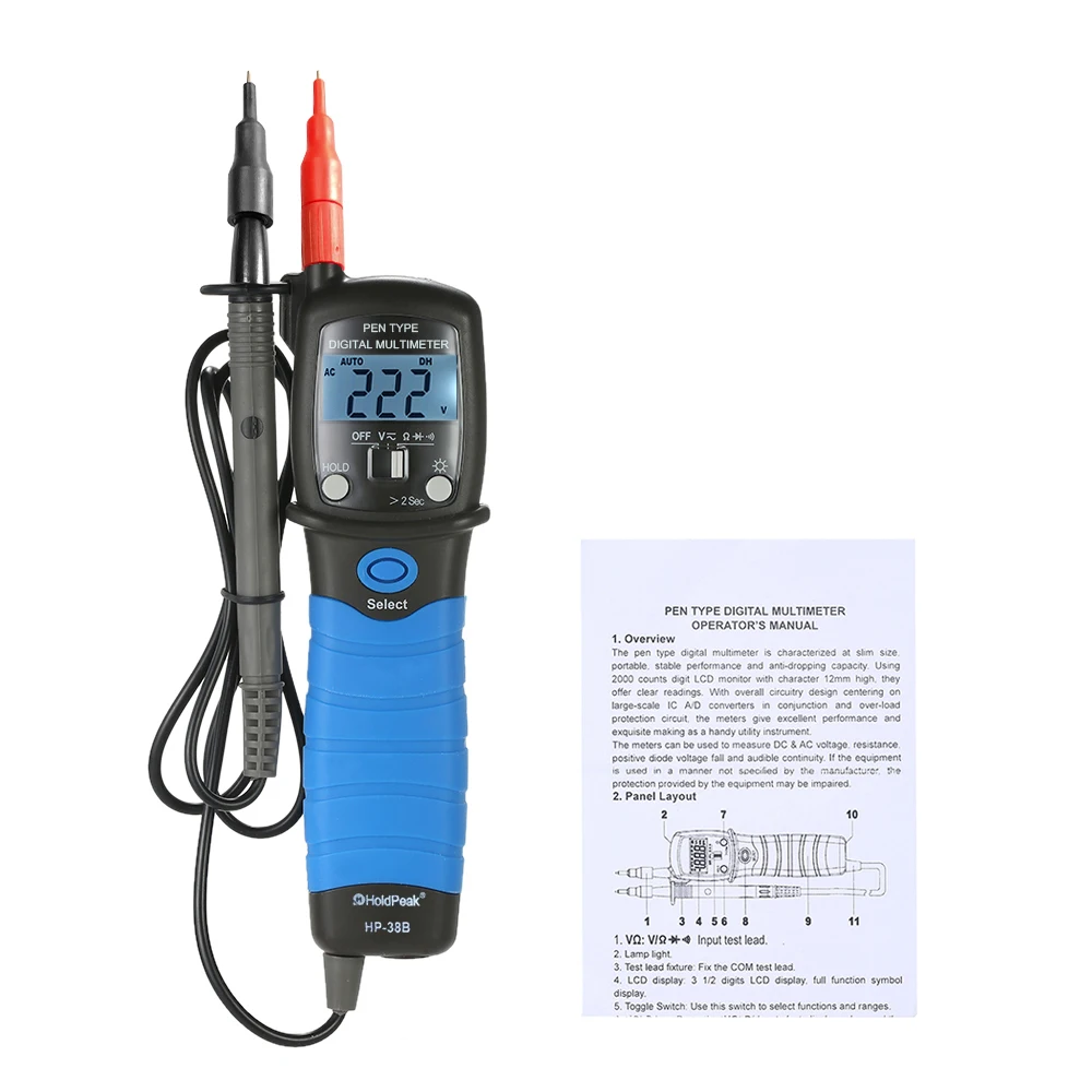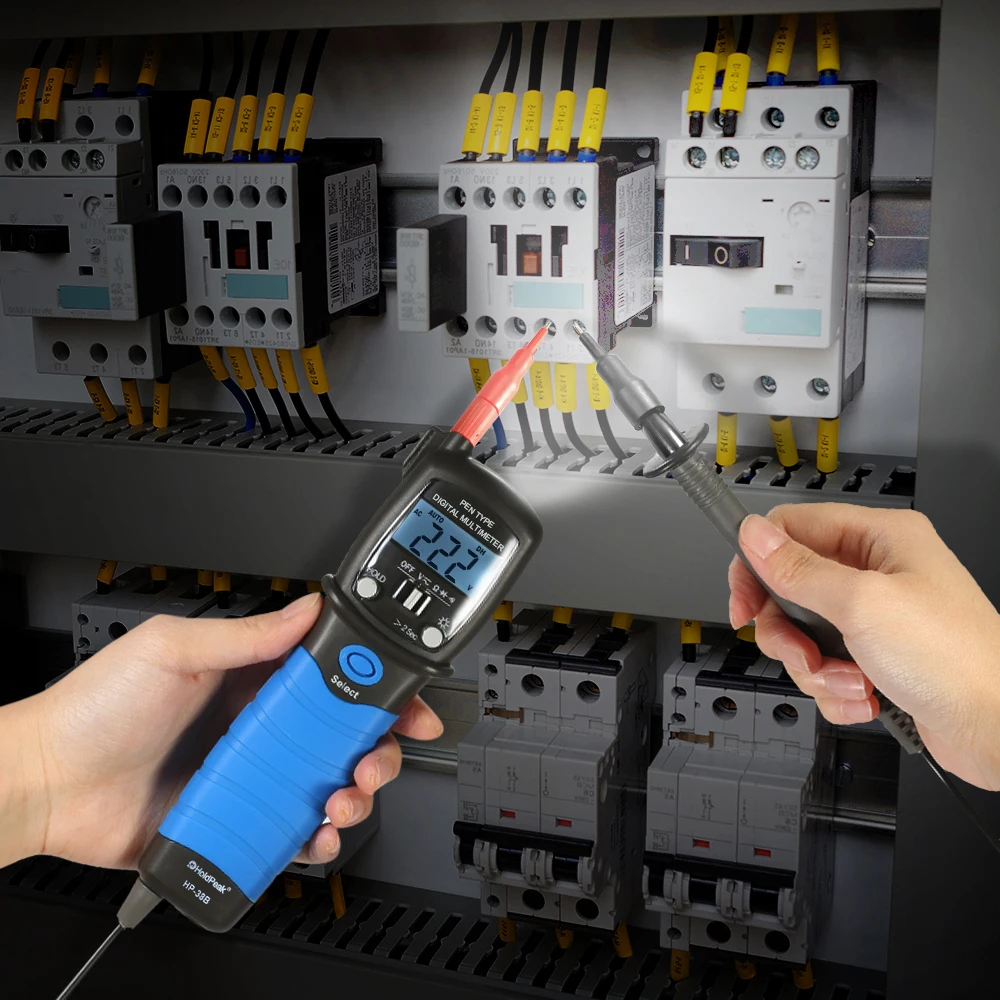 Портативный мультиметр типа ручки, используемый для тестирования напряжения постоянного и переменного тока, сопротивления, положительного напряжения диода падения и звуковой непрерывности.
