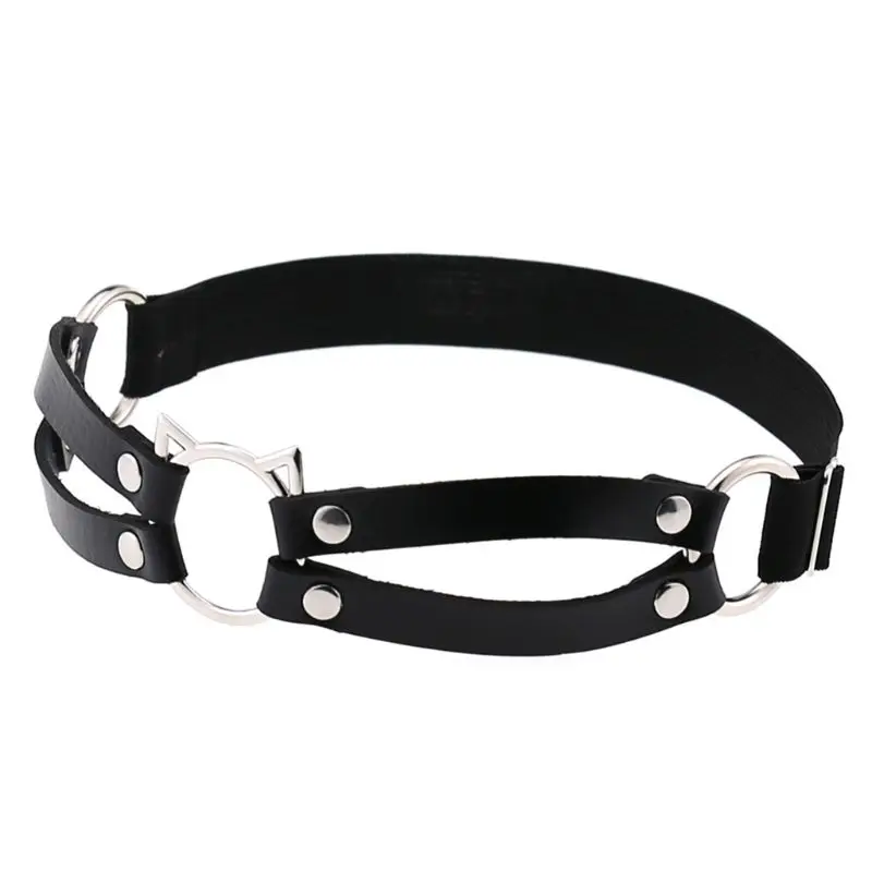 Готика, Харадзюку в стиле, с заклепками, украшения, Милый принт с размытым сплав кошка пижамы для малыша, двойной ряд искусственная кожа ремень.