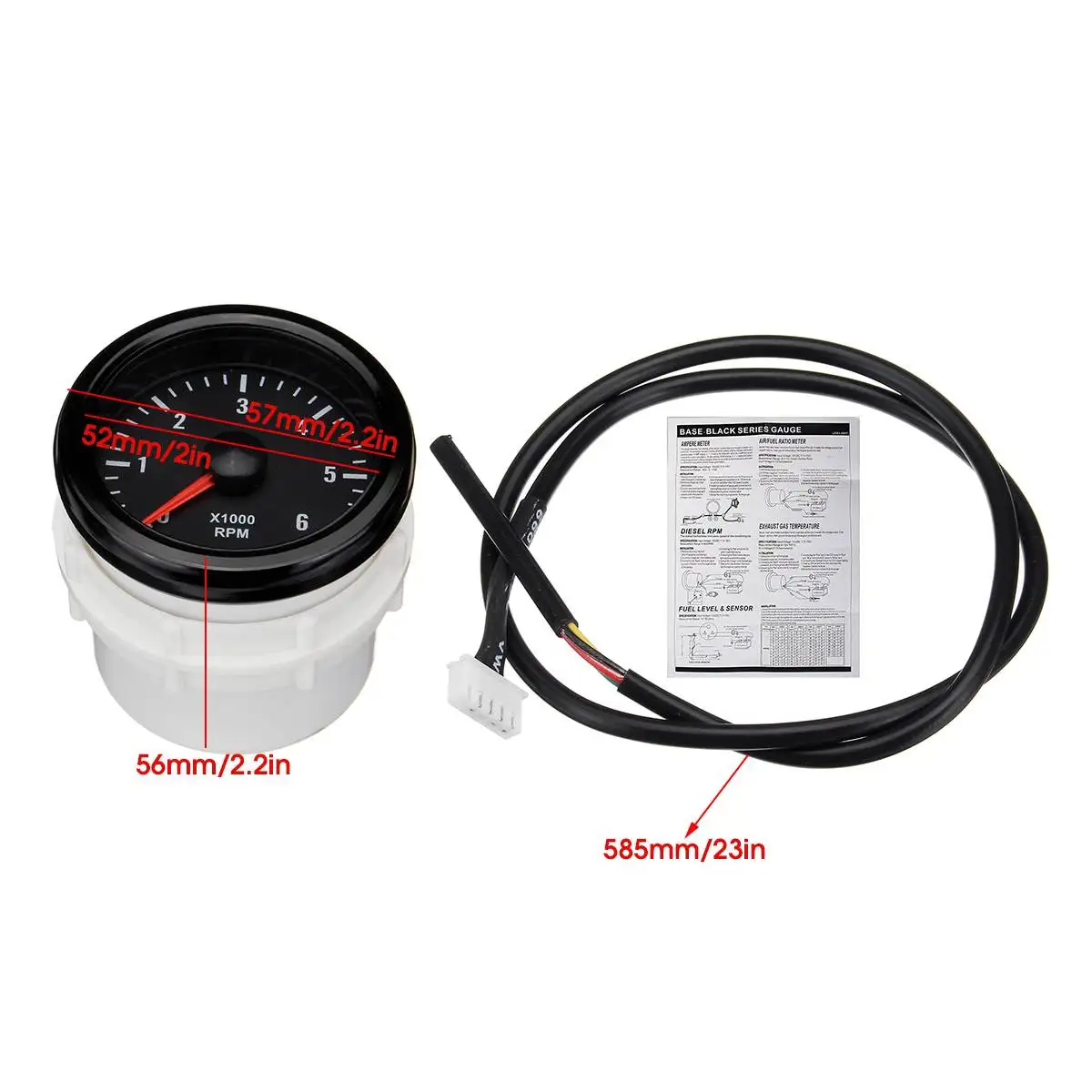52 мм 0-6000 об/мин (на приборной панели) белый Электрический Тахометр для дизельного двигателя