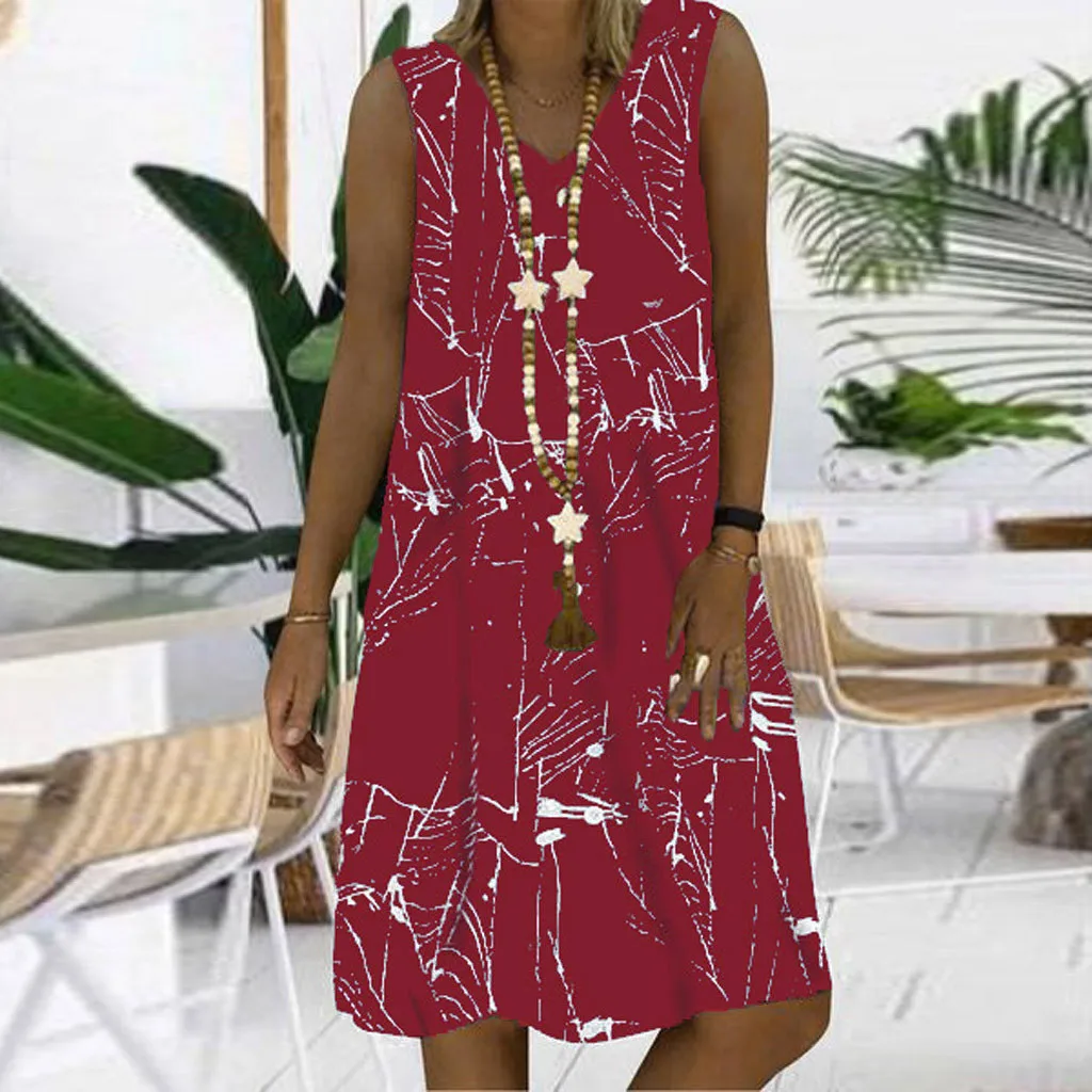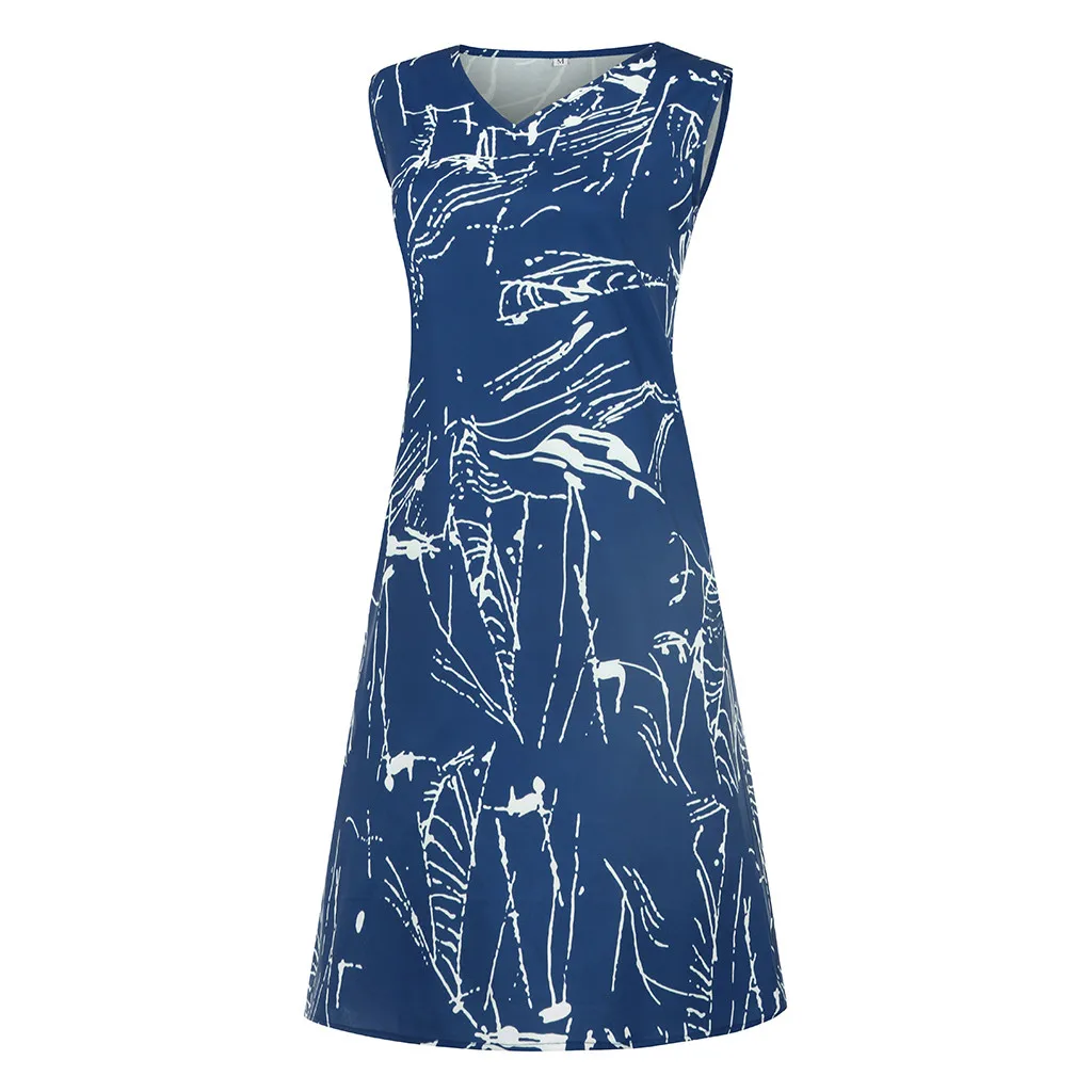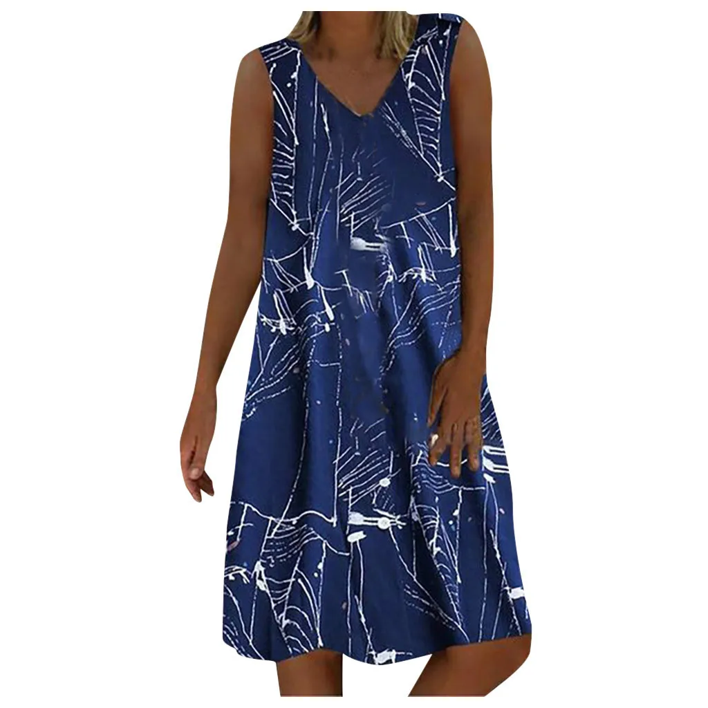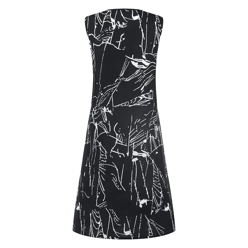 Модное женское повседневное свободное платье без рукавов с v-образным вырезом и принтом молнии