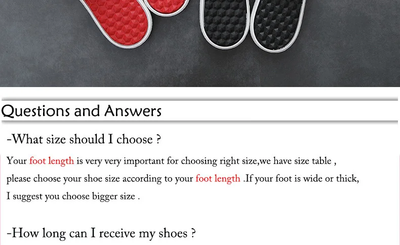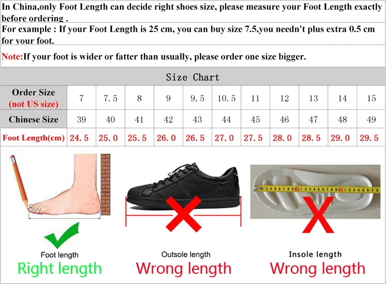 1. Мы не являемся размерами США. Мы не являемся европейскими размерами. В Китае только длина стопы определяет правильные размеры. Не измеряйте длину подошвы. Не измеряйте длину стельки. Пожалуйста, точно Измерьте длину вашей стопы, а затем выберите размер в соответствии с нашей таблицей размеров. 2. Если вы чувствуете неприятный запах, это нормально, потому что новая обувь может иметь запах клея. 3. Фото может отличаться от реальной обуви, изображение может быть ярким, реальная обувь может быть темной. 4. Мы упаковываем обувь в Поролоновый пакет, а не в коробку, поэтому обувь может быть немного помята после получения.