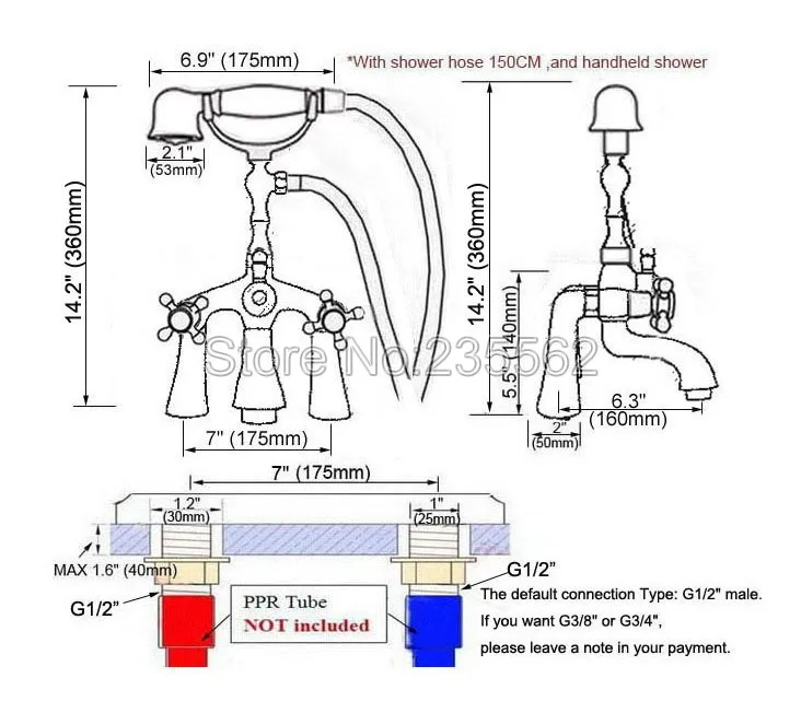 The default Connection Type: G1/2".If you want G3/8" or G3/4", please leave message when you submit your bidding.Accessories: