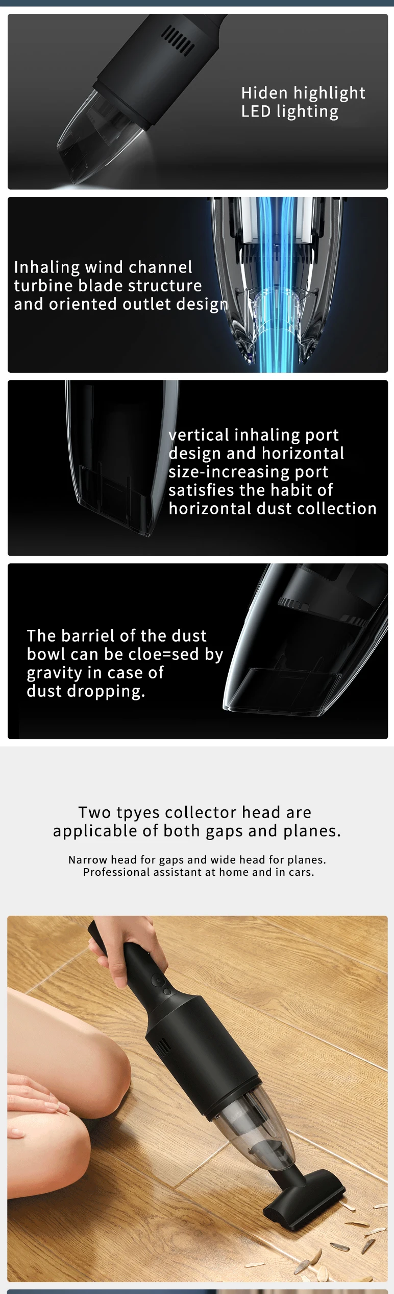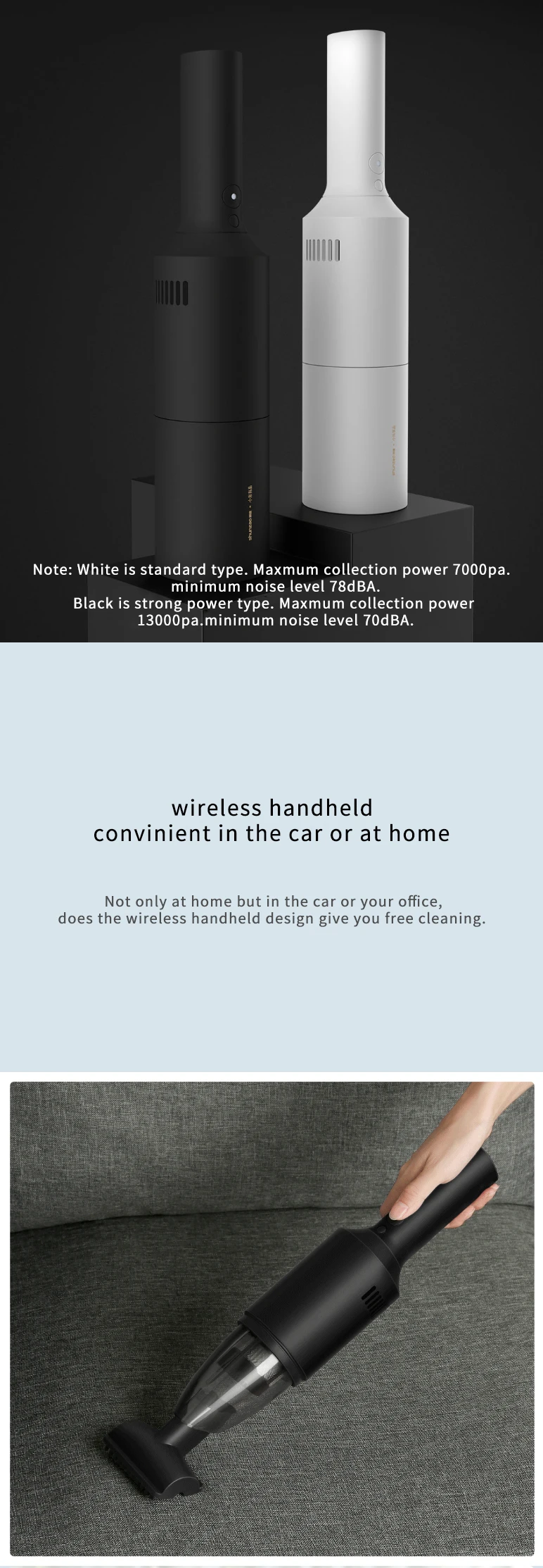 Особенности и технические характеристики Название: Z1 pro (большая версия всасывания); Z1 (стандартная версия) Модель: Z1 Pro; Z1 Цвет: черный; Белый Вес: 610 г; 700 г Размер: 73*76*336 мм; 73*76 336 мм Объем стакана пыли: 100 мл; 100 мл Входная мощность: 120 Вт/40 Вт; 90 Вт Максимальная степень вакуума: 15500pa; 7000pa Режим зарядки: DC5V2A/DC9V2ATypeC; DC5V2A/DC9V2ATypeC Время зарядки: DC5V2A3h, DC9V2A2h; DC5V2A3h, DC9V2A-2h Время разряда: высокий 10 мин/Низкий 30 мин, 12 мин Шум: 78dba (Уровень звукового давления 66,5 дБ) для высококлассных и 70dba (Уровень звукового давления 58,5 дБ) для низкоклассных; Уровень скорости обновления 78dba (Уровень звукового давления 66,5 дБ) Переключатель освещения: Да Логика переключения: Низкий/Высокий/выкл; ВКЛ/ВЫКЛ