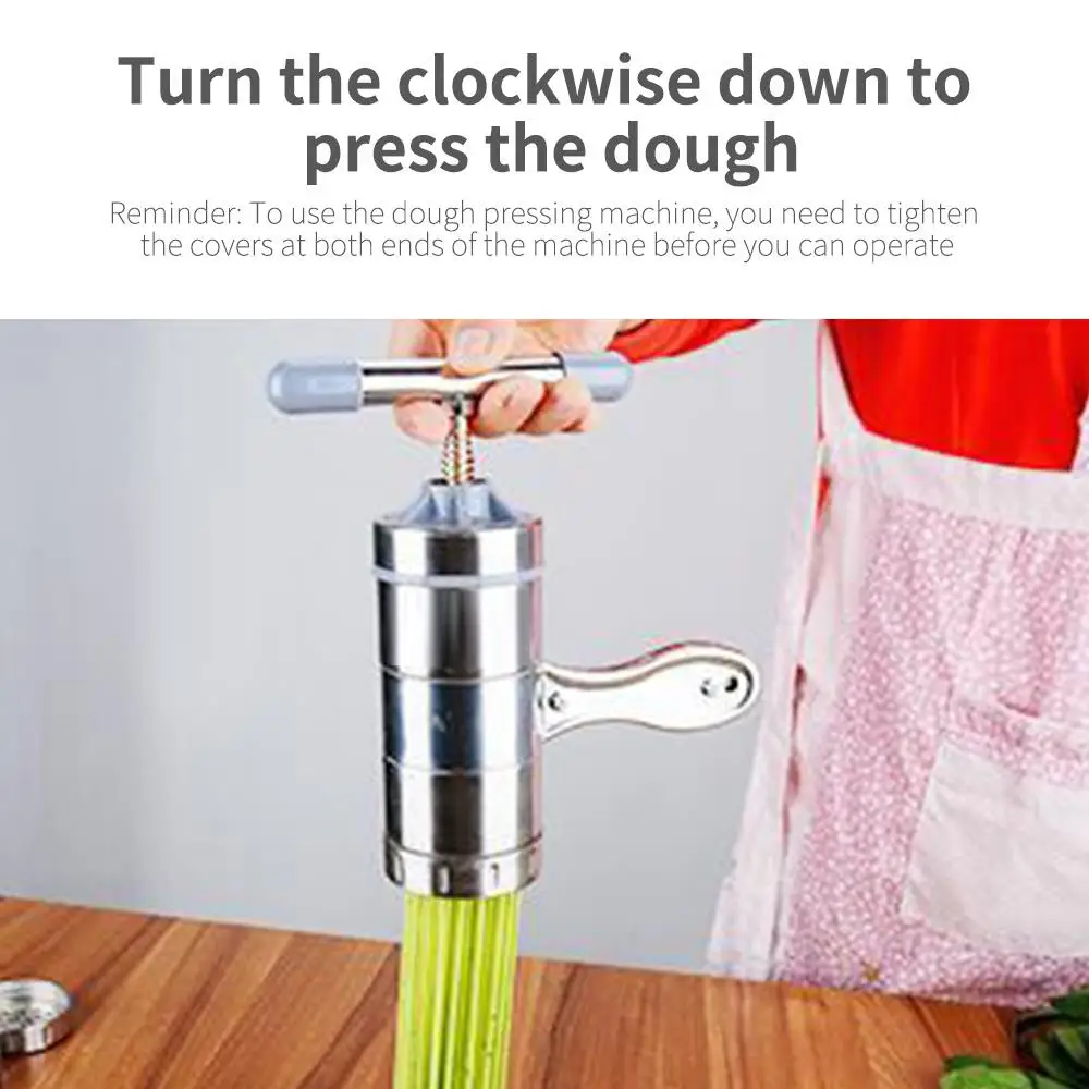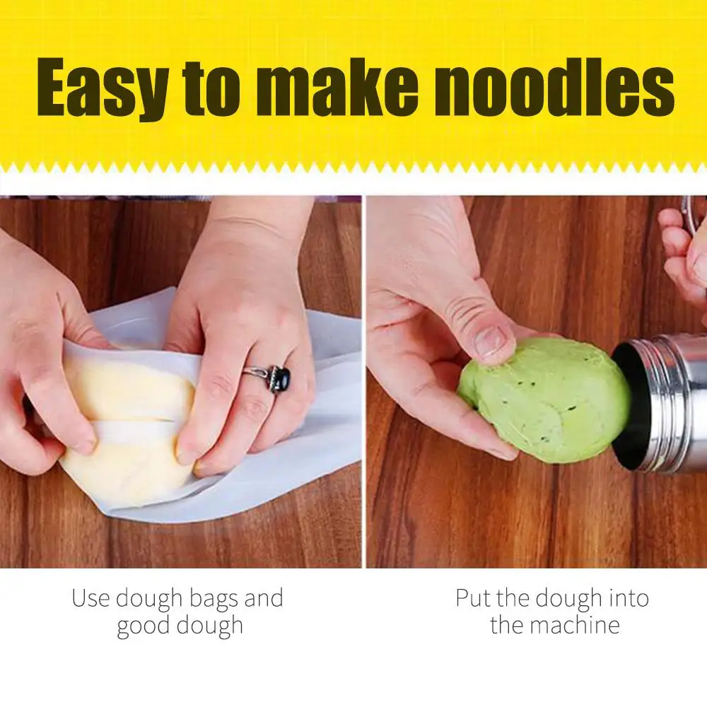 Use Tips: Knead dough with water to make it soft, adding some edible oil would be better because it can save effort to squeeze and keep noodles from being clumped.