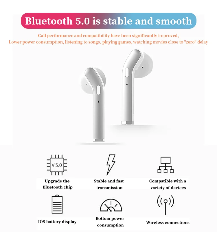 Bluetoot версия: 5,0 Зарядка постоянного тока: 5 В Частота: 20 Гц-20 кГц Чувствительность: 95 дБ/1 кГц Размер разъема: разъем для наушников, разъем для зарядки mini USB Дальность действия: 10 м Время воспроизведения музыки: 2-3 ч Время зарядки: 1-2 ч