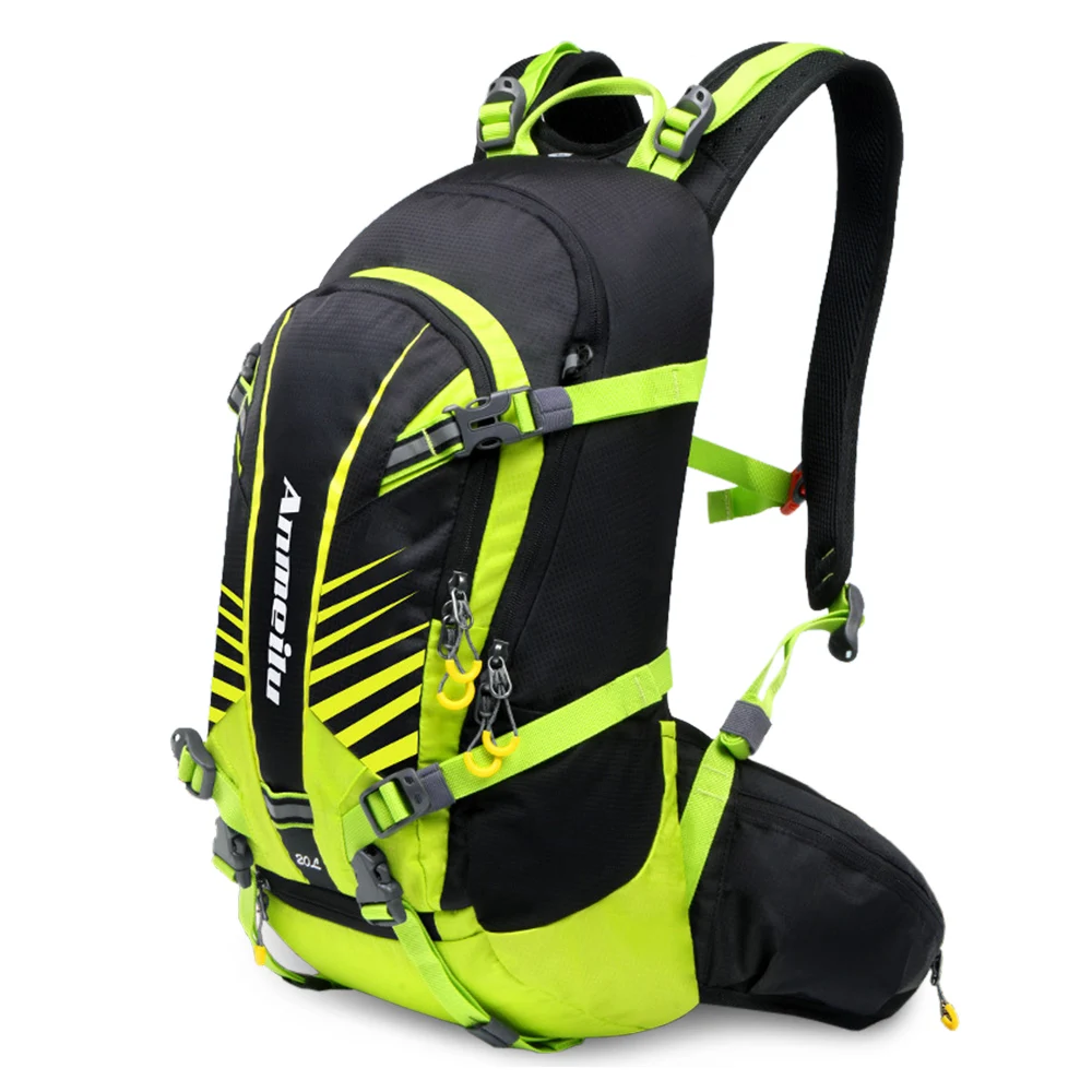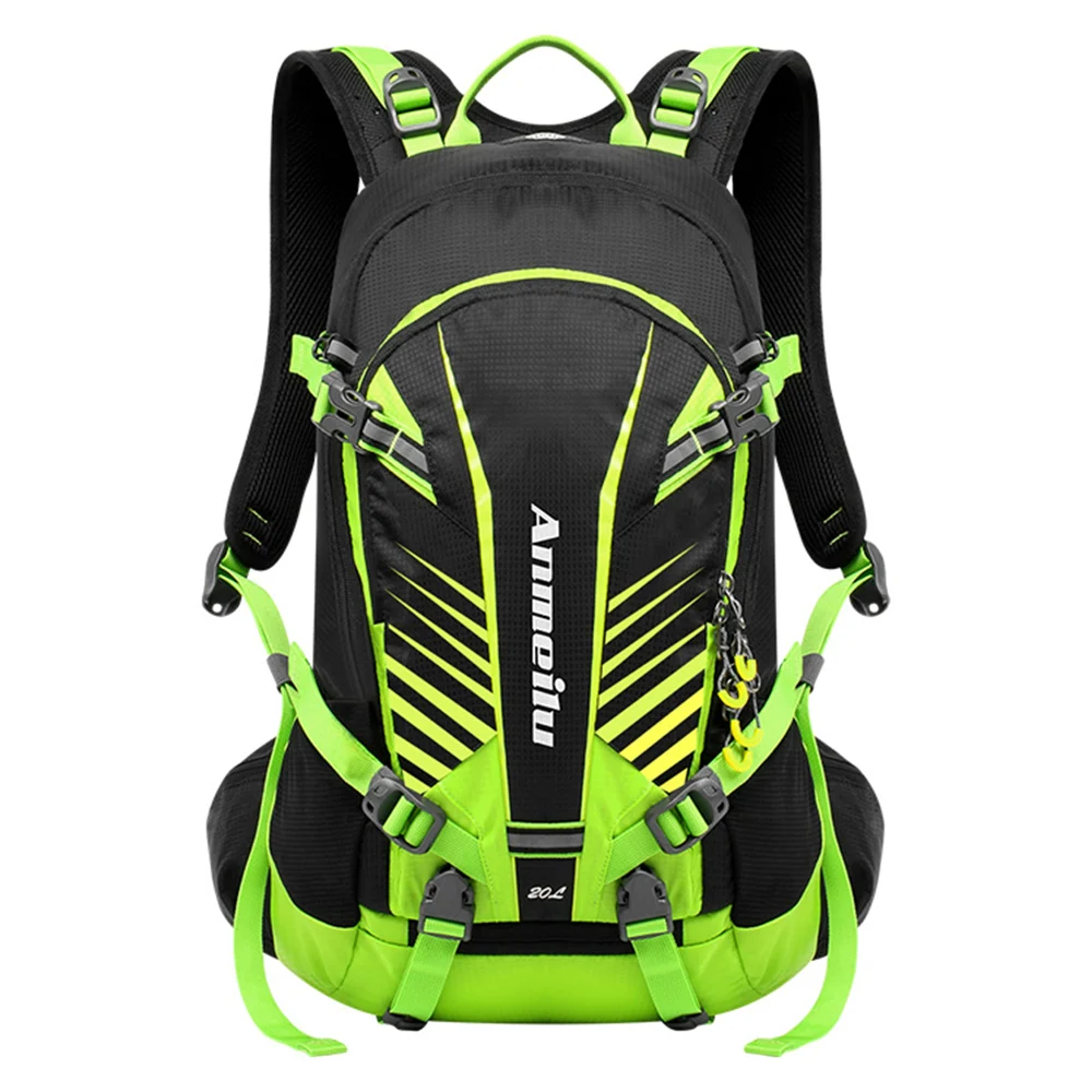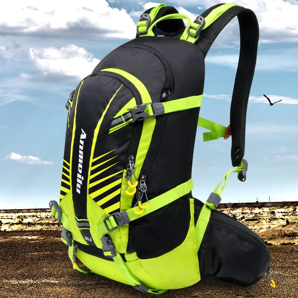 Этот велосипедный рюкзак объемом 20 л включает в себя множество отделений, чтобы обеспечить вместительное место для хранения ваших предметов. Он изготовлен из высококачественной нейлоновой ткани, которая делает рюкзак легким, водостойким и износостойким. Регулируемые плечевые ремни и Мягкая сетчатая спинка удобны, светоотражающие элементы безопасны для езды ночью, а сетчатый чехол удерживает шлем. С дождевиком вы никогда не будете беспокоиться о том, что ваши драгоценности разрушены в дождливые дни. Это отличный спортивный рюкзак для всех видов активного отдыха, таких как Велоспорт, кемпинг, альпинизм, туризм, путешествия и т. Д.