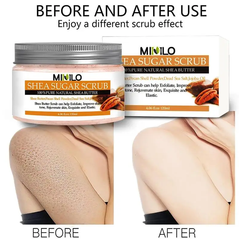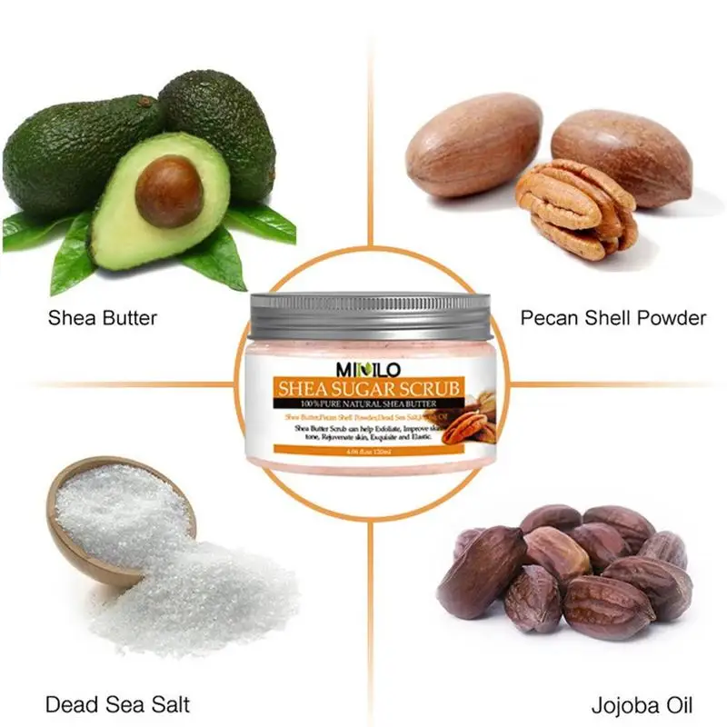 Эффективность: Наслаждайтесь этим мягким отшелушивающим кремом, добавьте сертифицированное масло Ши в скраб для масла ши и ряд натуральных масел, включая масло ши, порошок в виде скорлупы пекана, Соль Мертвого моря, масло жожоба. Этот скраб обеспечивает сильный Отшелушивающий и увлажняющий эффект, оставляя ощущение мягкости и гладкости, обеспечивая сильное увлажнение