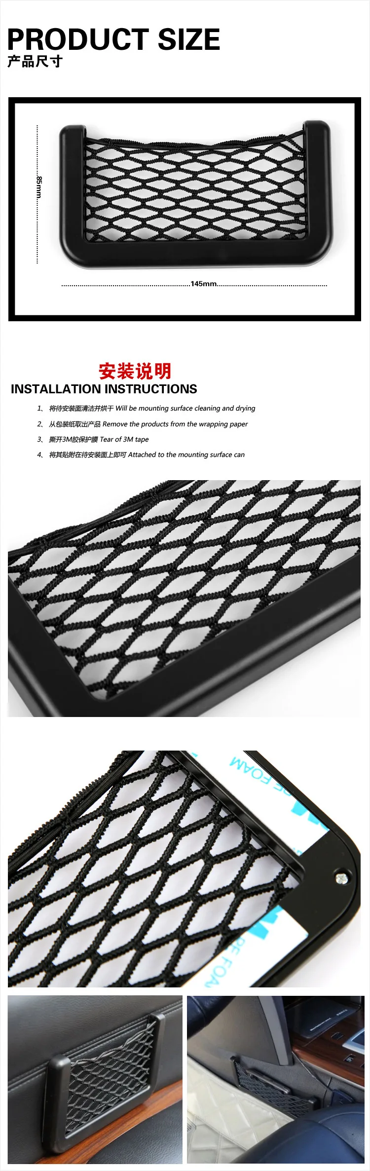 ☞Новое и высокое качество; ☞Материал: сетка + полипропилен; ☞Размеры: Approx.15cm (Ширина) х 8 см (высота) X 1,1 см (Толщина); ☞Удобная, простая, свободная форма; ☞Только двухсторонний клей 3 мм может просто что-то положить; ☞Мы подобрали двусторонний сетчатый пакет; ☞Легко устанавливается, прочный и безопасный.