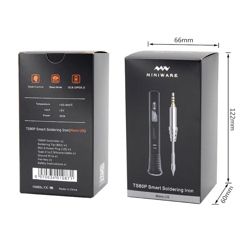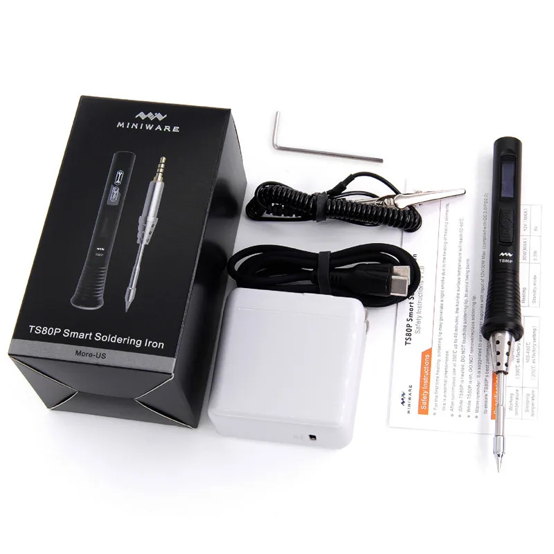 TS80P-это усовершенствованная версия паяльника TS80 smart. TS80P-это умный Электрический паяльник, который использует интерфейс USB Type-C и стандартный источник питания PD2.0 / QC3.0. Можно использовать зарядную головку и зарядку, соответствующие стандарту PD2.0 (12 В 2,5a) или QC3.0 (9 в 2A). Baohe мобильный источник питания, выходная мощность до 30 Вт. Нагрев от комнатной температуры до 300 ° C занимает всего 8 секунд быстрее, и производительность выше. Корпус контрольного терминала TS80P изготовлен из алюминиевого сплава и интегрирован с ЧПУ. Конструкция компактная, эргономичная, красивая и модная и имеет чувство технологии. Оснащенный oled-дисплеем, вам удобно контролировать состояние паяльника в любое время. Встроенный STM32 интеллектуальный чип управления, который может разумно контролировать повышение и падение температуры, с несколькими режимами, такими как сон, автоматическое отключение, защита безопасности и т. д. Слой приложения кода является открытым исходным кодом, вы можете разработать прошивку паяльника в соответствии с вашими потребностями. TS80P и TS80 имеют паяльную головку, в которой используется керамический нагревательный сердечник с внутренним подогревом. Благодаря теплопроводящей части из чистой меди тепло быстро переносится на наконечник головки паяльника, а показатели контроля температуры стабильны. Посылка включает: 1 * TS80 плюс паяльник 1 * TS-B02 наконечник 1 * PD источник питания (США) 1 * кабель Tpye-C 1 * зажим для заземления и провод 1 * шестигранный ключ 1 * Руководство пользователя