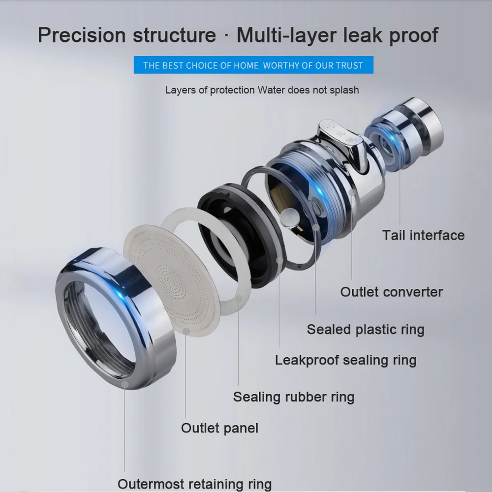 5. Вращение на 360 градусов: фильтр для воды имеет функцию вращения на 360 градусов, благодаря которой вы можете легко очистить каждое слепое место раковины без брызг воды.