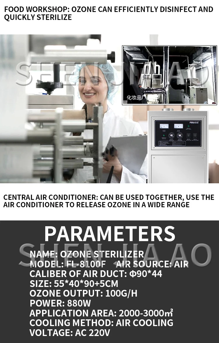 100g/h ozone generator air purifier air conditioning duct type ozone disinfection machine purification system ozone machine