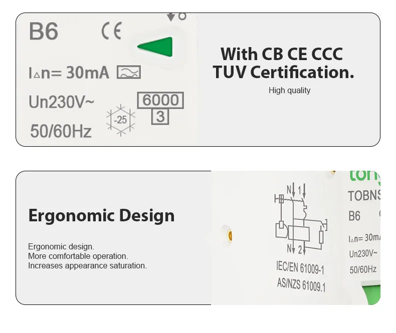 6: Автоматическое отключение цепи, когда происходит заземление/ток утечки и превышает номинальную чувствительность.