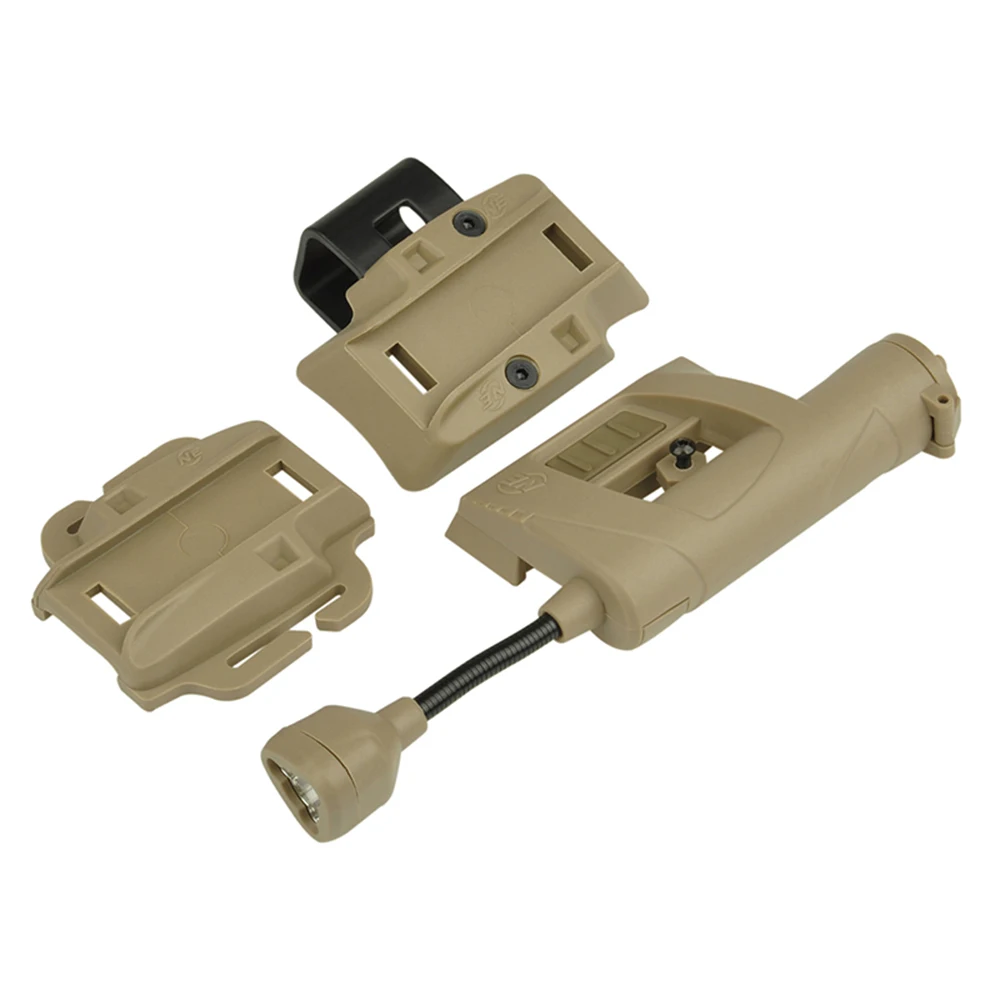 Особенности: 1. Зарядка Mpls имеет гибкую шею, обеспечивает локальное освещение для выполнения задачи. 2. С функцией зарядки. Имеет широкий Режим луча, хорошую яркость. 3. Светодиодный светильник, 130 лм, энергосбережение, длительный срок службы. 4. Mpls имеет 4 режима вывода: красный, зеленый, белый светодиодный s и ИК-светодиодный. 5. Подходит для MICH 2000/Быстрый Шлем и система MOLLE. Характеристики: Тип изделия: наружная лампа для шлема Материал: полимер Дополнительный цвет: DE, BK Размер: прибл. 13,5х4, 5 см/5,3х1, 8 дюймов Светодиодный: красный, зеленый, белый светильник Батарея: 1 х АА батарея (не входит в комплект)