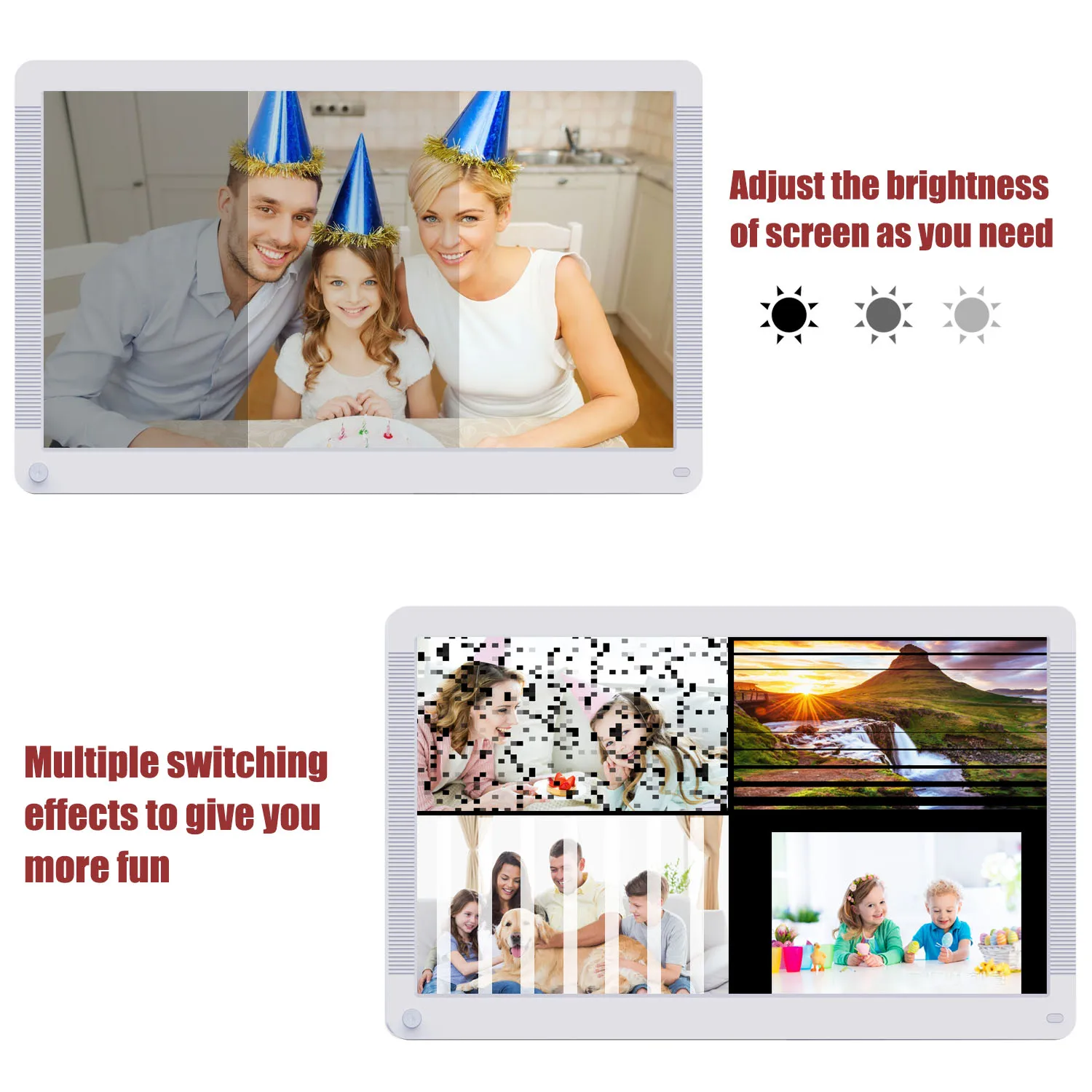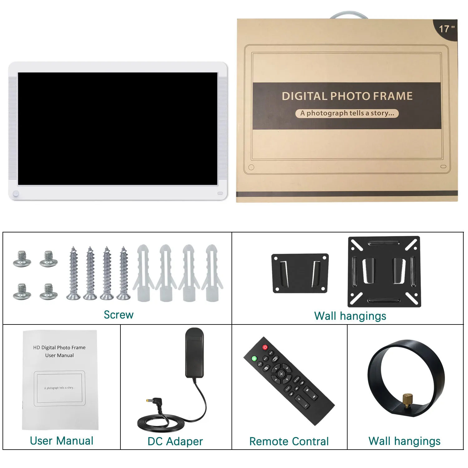 Особенность: 17-дюймовая цифровая фоторамка с высоким разрешением 1920*1080 ЖК-дисплей. Отображение ваших любимых фотографий в автоматическом режиме слайд-шоу. Насыщенные и яркие цвета демонстрируют ваши фотографии с замечательным качеством изображения. Воспроизводит видео и музыку со встроенными динамиками и выходным разъемом для наушников. Часы, календарь, будильник и настройка времени. Встроенные стереодинамики для наслаждения любимой музыкой. Не требует установки и не требует установки программного обеспечения. С двумя разъемами USB: один для чтения флэш-диска U; Другой для подключения к компьютеру. Вы даже можете взять SD карту из камеры и воспроизводить с нее фотографии напрямую без дополнительной обработки. В комплекте подставка для поддержки настольных компьютеров. Компактный ИК-пульт дистанционного управления для удобного доступа к элементам управления воспроизведением. Можно использовать как MP3/MP4/электронную книгу/Календарь или часы. Он станет отличным центральным элементом для любого дома, офиса или бизнеса. Спецификация: Материал: пластик Размер экрана: 17 дюймов Цвет: черный, белый Вилка: ЕС, США, Великобритания Разрешение: 1920*1080 ЖК-дисплей Язык: многоязычный Безопасная цифровая карта памяти (SD), мультимедийная карта (MMC), карта памяти (MS) Считывает карту памяти: макс. до 128 ГБ Формат изображения: JPEG,BMP,GIF,PNG Музыкальные форматы: MP3,WMA,OGG,FLAC,APE,AAC,AC3, tra, DTS Формат видео: MKV,AVI,MOV,MP4,TS,ASF,FLV,PMP,RMVB,MPG,VOB,WMV Вход адаптера: 110 ~ 240 В переменного тока Выход адаптера: 5 В, ма Источник питания: адаптер переменного тока 110 ~ 240 В Батарея контроллера: 1 * CR2032 Посылка тация: 1 * цифровая фоторамка SD-карта 1*32 Гб (не входит в комплект) 1 * Рамка 1 * пульт дистанционного управления 1 адаптер питания переменного тока 1 * Руководство пользователя (на английском языке)