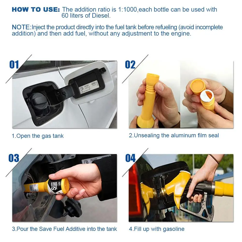 Пункты маркированного списка:1. Уменьшение шума: уменьшение шума двигателя и улучшение пускового дрожания транспортного средства, эффективное улучшение проблемы чрезмерных выбросов выхлопных газов.2. Анти-ржавчина и смазка: он может эффективно предотвратить коррозию нефтепровода и автомобильной масляной системы, чтобы защитить и продлить срок службы двигателя.3. Чистый углерод: после одного цикла, углерод в системе двигателя будет постепенно очищаться, чтобы уменьшить повреждение двигателя.4. Экономия топлива: полностью разложено, чтобы уменьшить расход топлива, уменьшить ваши расходы5. Защитный масляный насос: уменьшает Скорость старения масляного насоса и продлевает срок службы транспортного средства.Автомобильное топливо сокровище бензиновая добавка удалить двигатель углеродный депозит сохранить бензин увеличить мощность добавка в масло для экономии топливаОписание:Период осаждения и осыпания углерода (1-2 бутылки): топливо и залежи углерода смешиваются вместе, и двигатель может слегка встряхнуть.Период очистки и разрядки углерода (3-5 бутылок): залежи углерода, которые выпадают, будут вытекать с выхлопом автомобиля, и шум двигателя будет уменьшен.Период глубокой очистки и технического обслуживания (6-8 бутылок): скопированный углерод, накопившийся за год, будет удален, так что Бензин может быть полностью сгорел и расход топлива может быть уменьшен.1. Вставьте продукт непосредственно в топливный бак перед заправкой (Избегайте неполного добавления), а затем добавьте топливо, без какой-либо регулировки двигателя.2. Может обрабатывать чехол (40-60 литров) бензина на бутылке; Первый использовать двойной, 5 бутылок для одного цикла.3 новых использования автомобиля, после непрерывного использования в течение 1-2 циклов, добавить один раз каждые 2000 км. Для транспортных средств, проходящих Более 100000 км, добавить один раз в 2000 км после непрерывного использования в течение 2-3 циклов.4. Сырье этого продукта не имеет побочных эффектов на транспортном средстве.Технические характеристики:Название: Топливо сокровищеСрок годности: 5 летЁмкость: 60 млЭффективность: стимулирует сгорание, экономит энергию, развивает выхлопные трубы, очищает цепь маслаПрименимое масло: подходит для 90, 93, 97, 98 и других сортов бензина.Способ применения: коэффициент сложения составляет 1:1000, каждая бутылка может использоваться на 60 литров.Упаковочный лист: 1 * бензиновая добавка