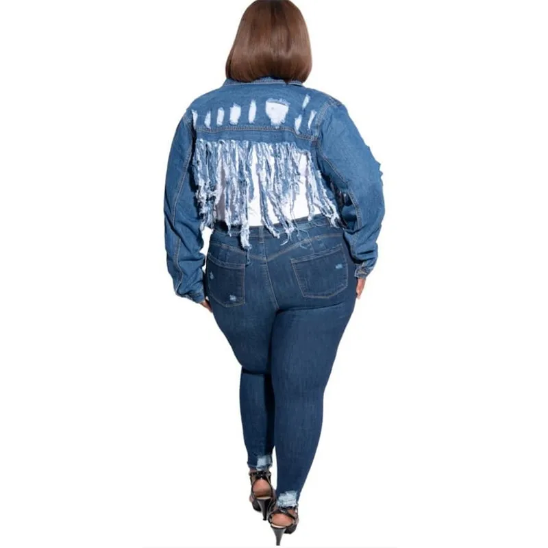 Женская короткая джинсовая куртка размера плюс Adogirl, джинсовая куртка с длинным рукавом и дырками, модная повседневная верхняя одежда