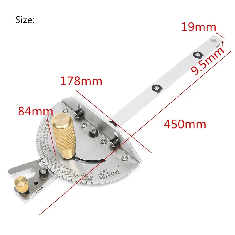 -Угловой Калибр состоит из длинной тонкой направляющей, которая едет в угловом отверстии настольной пилы (некоторые ленточные пилы также имеют Угловые отверстия), И направляет угловой Калибр параллельно лезвию. -К этому направляющему прилагается кусок в форме полумесяца, который поворачивается в точке соединения с направляющим. -Фиксирующий механизм позволяет блокировать поворотную секцию под любым углом. -Плата размещена на плоской секции датчика, и вся сборка (угловой и бортовой) продвигается вперед, Позволяет лезвию пилы обрезать конец доски под заданным углом. -Медная ручка, большой захват для комфорта и прочности. 1. Сделано для профессионального использования. Обеспечивает крайнюю точность резки под углом. 2. Угловой датчик с 27 упорами для точного инкрементного контроля. 3. Большой захват для комфорта и прочности. 4. Шайба, устойчивая к наконечникам, обеспечивает устойчивый датчик при удлинении по рабочей поверхности. 5. Датчик угла имеет стандартный размер угла 3/8 дюйма на 3/4 дюйма (приблизительно 9,5 мм на 19 мм) и длину 450 мм. 6. Может использоваться для большинства настольных пил и фрезерных столов со стандартными прорезями. 7. Установите настольную пилу, ленточную пилу, фрезерный стол, дисковую шлифовальную машину или ленточную шлифовальную машину, как перчатка с пазом 3/8x3/4 дюйма, например Dewalt 744, Dewalt 745, makita 2705 и так далее. Спецификация: Материал: алюминий + пластик + латунь Применение: инструмент для обработки дерева Размер винта: около 6 мм (M6) Стандартный размер слота: ширина 3/4 дюйма (19 мм), толщина 3/8 дюйма (9,5 мм) Подходит для Dewei 744, 745, Haiwei, стальных настольных пил, ленточных пил, настольных пил Makita 2705 Общий размер: как на картинке Посылка входит: 1 угломер