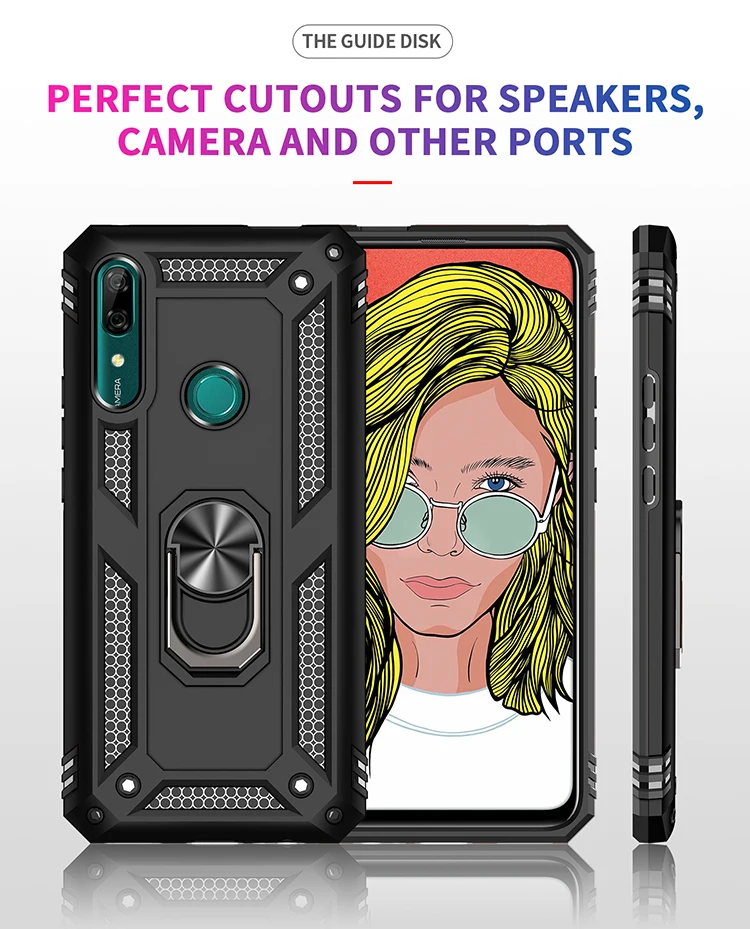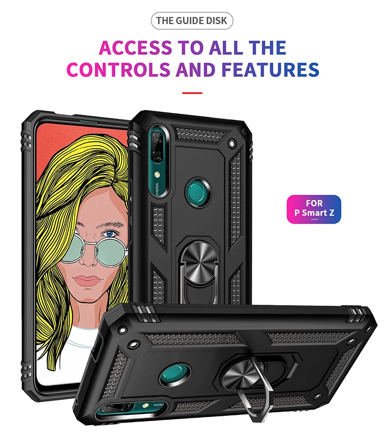 Armadura de parachoques de la caja del teléfono para Huawei P Smart Z Honor 10 Lite Y5 Y6 Y7 Pro Y9 primer 2019 coche del soporte del sostenedor del anillo de protección caso Capa