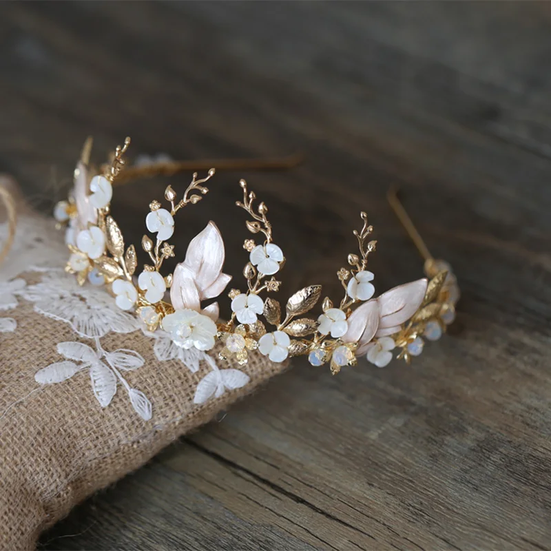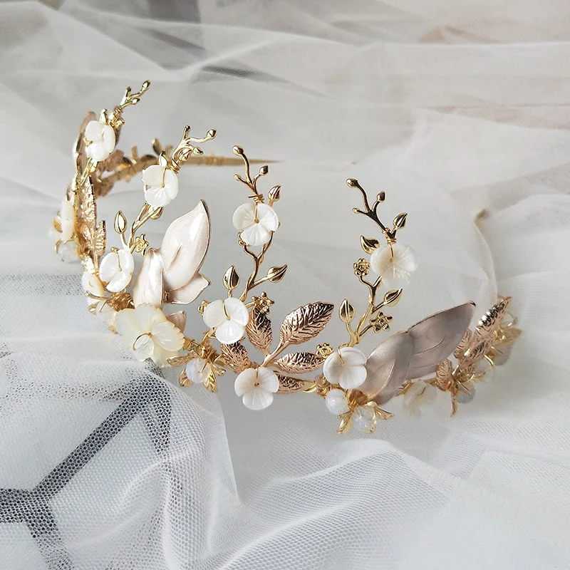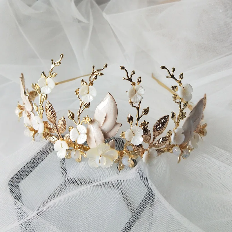 Gibson Bridal-профессиональный свадебный аксессуар ручной работы. BR-диадема, головная повязка, гребень для волос, свадебный пояс, фата для невесты и т. д. Великолепные свадебные аксессуары для волос, корона для волос на день рождения, Королевская корона принцессы, свадебные тиары для женщин, ювелирные изделия Материал: цветы оболочки, Хрустальный опал, золотые листья Цвет: золотой цвет Потрясающий свадебный головной убор-это обязательный свадебный аксессуар для волос, который идеально дополнит большинство свадебных причесок, придавая причудливый и деревенский вид, который вы искали. Это идеальный аксессуар для вашего особенного дня!