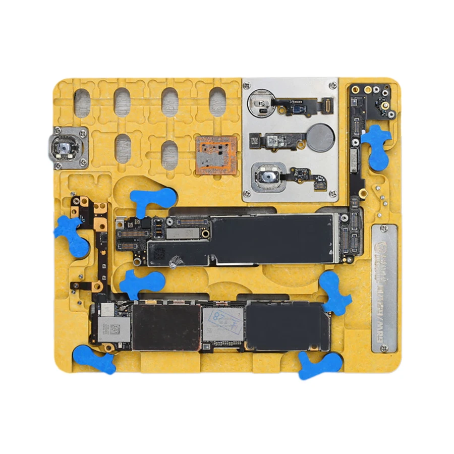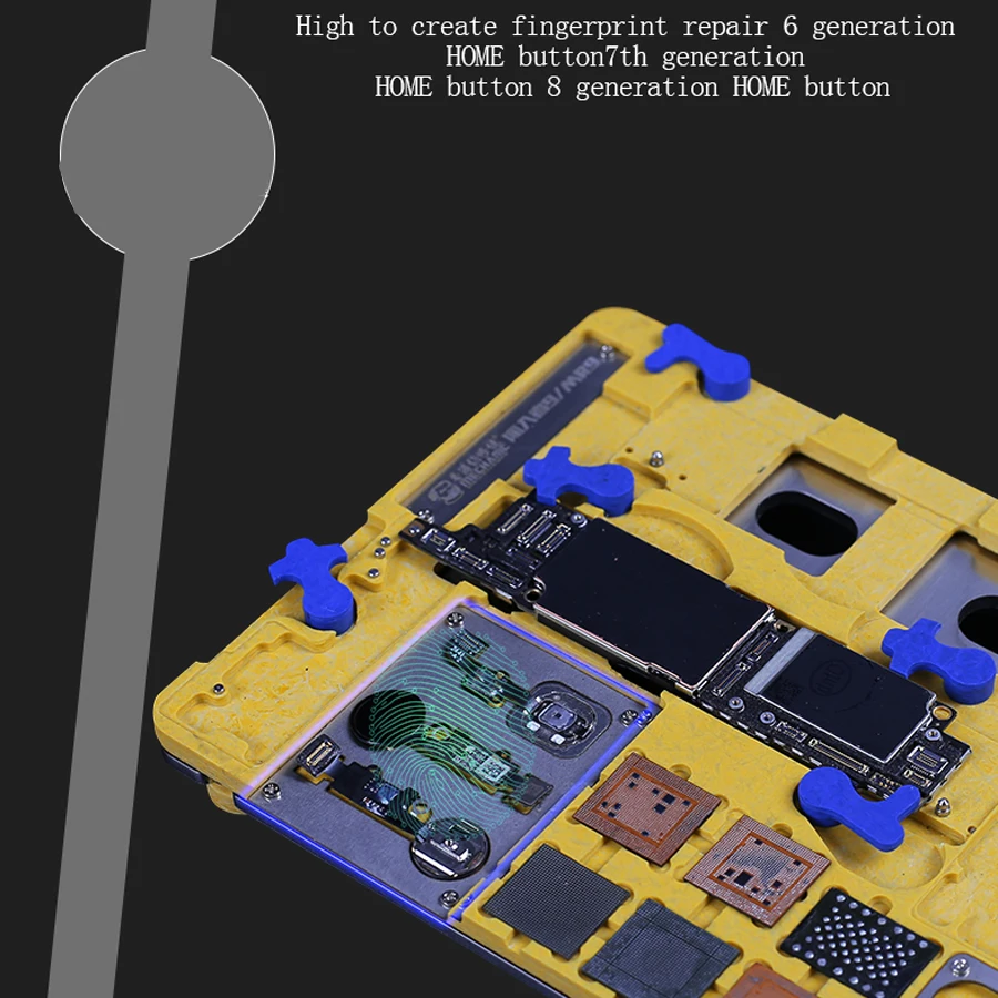 Поддержка iPhone 6/6 plus/7/7 plus/8/8 plus ремонт отпечатков пальцев Поддержка позиционирования материнской платы iPhone XR / 8 Plus / 8, реболлинг Поддержка удаления клея для ЦП A12 / A11 / A10 / A9 / A8. Поддержка удаления клея NAND / PCIE Материнская плата PCB приспособление, ЦП NAND PCIE клей удаление, ремонт отпечатков пальцев fxture многофункциональный в одном Платформа для ремонта печатной платы добавила структуру позиционирования ЦПУ. Позиционирование вручную не требуется, что повышает успех. Платформа для ремонта печатных плат разработана с функцией посадки интегрированного слоя олова. Точные трафареты производятся по ведущей в мире лазерной технологии. Платформа для ремонта печатной платы добавлена структура разделения слоев материнской платы и установки позиционирования. Конструкция с точной позиционирующей колонкой позволит провести эффективный ремонт для разделения, пайки и установки. Теплопроводный материал из чистой меди используется в специальной обработке, поэтому цвет поверхности сохраняет новый цвет. Точная защелкивающаяся конструкция, не повреждает материнскую плату