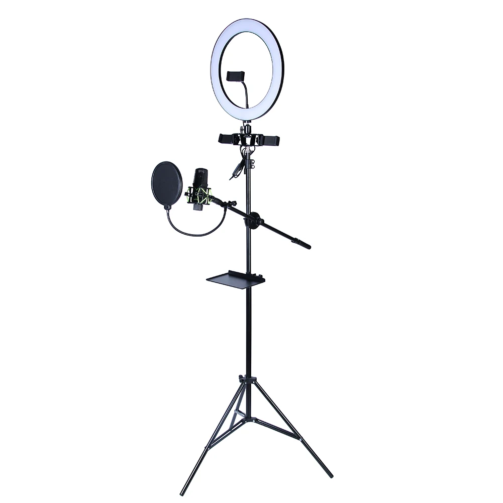 Профессиональное оборудование для прямой трансляции, в том числе: светодиодный кольцевой светильник, светодиодный светильник-Трипод, кронштейн на мобильный телефон, подставка для микрофона, используется для прямой трансляции, макияжа, Селфи, портрета, YouTube, видеосъемки в блоге. Светодиодный кольцевой светильник в сочетании с 3 режимами работы и 10 уровнями яркости, чтобы удовлетворить ваши требования в различных условиях. (питание от USB:-без аккумулятора!) Светодиодный кольцевой светильник: 3 режима работы: белый светильник, теплый светильник, теплый белый светильник Блок питания usb, 10 уровней яркости Диаметр: 16 см/25,5 см. Напольный штатив с регулируемой высотой, 60-160 см