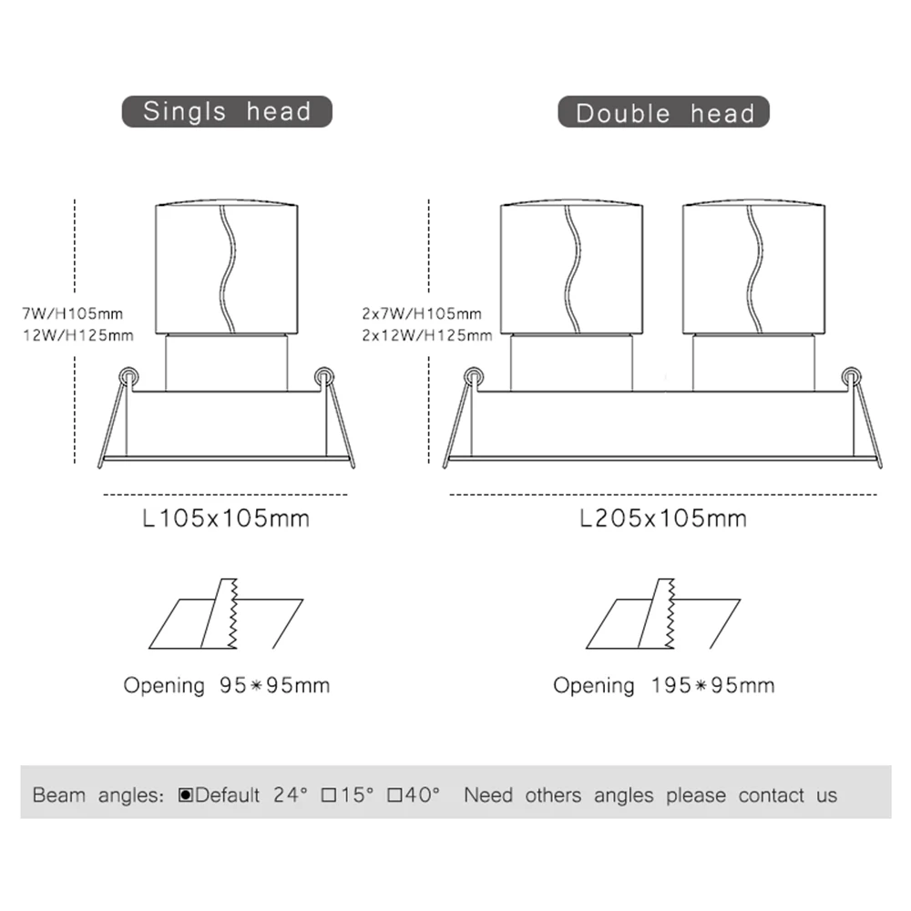 Светодиодный точечный светильник с решеткой Одноголовый точечный light-7W,12 Вт Light-14W с двойной головкой (2X7W),24W(2X12W) Встраиваемый светодиодный решетчатый Точечный светильник Гарантия два года Гарантия бренда, надежное качество!