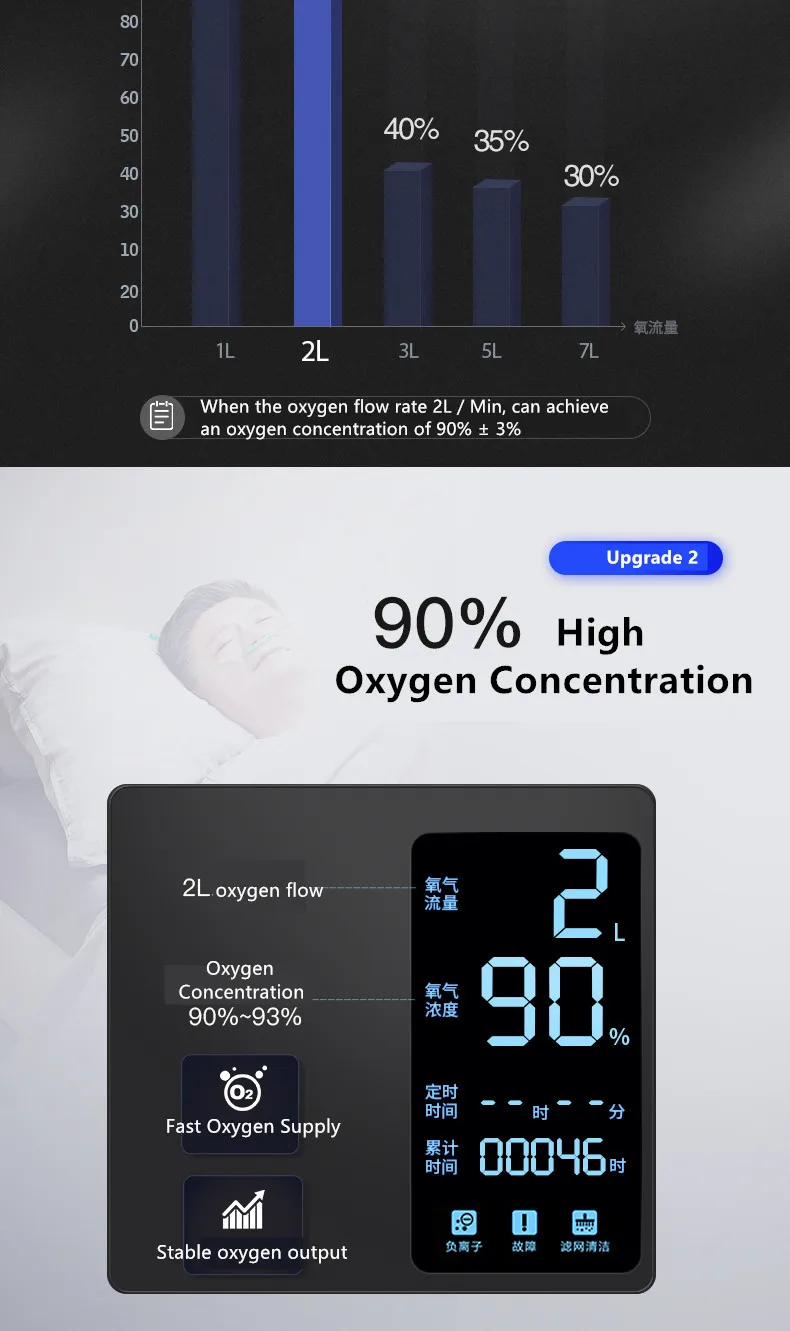 Особенности • Ajustavel e fluxo continuo de oxigênio: 1-5-7 л/мин;, высокая концентрация и стабильность, может отвечать требованиям медицинского уровня • Стабильность: может работать непрерывно в течение 480 часов с концентрацией кислорода компрессор скорость потока кислорода концентрация кислорода: 2л может достигать более 99% Тихий и удобный, положительный 43D (A) (средний) • Более интимное обслуживание, магазин yuwell поставляет всю машину 1 год гарантии, компрессор 3 года гарантии позволяют вам беспокоиться бесплатно после продажи • Компактный и портативный для использования в автомобиле, можно наслаждаться непрерывной подачей кислорода • Кислородная планка для домашнего модного внешнего вида • Срок службы компрессионного насоса до 8000 часов, высокая стабильность • ЖК-экран с высоким обратным дисплеем, легко менять экран, легче чистить • Инфракрасный генератор кислорода с дистанционным управлением в режиме реального времени Если машина не работает, машина будет автоматически оповещать, напоминаем, каждые 100 часов будет иметь фильтр очистки в режиме реального времени • Одна кнопка работы, более удобная в использовании простая, быстрая, простая в эксплуатации, и никогда не беспокойтесь, что мама и папа не будут нам Спецификация Мощность: 110-220 В ± 22 в; 50 Гц ± 1 Гц; Входная мощность: 150 ва Содержание кислорода: 30%-94%; Диапазон потока: 17л/мин. Вес: 7,5 кг; Размер: 27 см * 17,5 см * 29,5 см Упаковочный лист 1 X концентратор кислорода; 1 X носовая канюля; 1 X диффузор гарнитуры; 1 X Войлок фильтра; 1 X AC, Этот кислородный концентратор yuwell может быть использован с вашим CPAP машиной в то же время, если ваша маска для носа CPAP имеет трубку, которая позволяет прикрепить конец кислородной трубки от кислородного концентратора. Мы предлагаем соответствующие вилки питания для разных стран. Пожалуйста, оставьте сообщение, чтобы сообщить нам, какой тип штепсельной вилки вам нужен. Если вам нужно такое же качество, небольшие продукты перемещения, пожалуйста, нажмите здесь: генератор кислорода 1L
