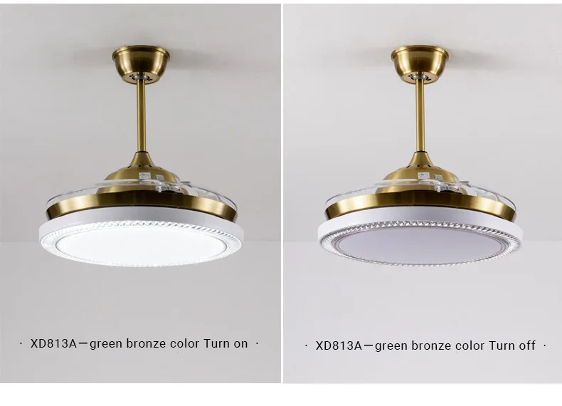 Золотое металлическое покрытие потолочное основание и корпус лампы + Акриловые вентиляторы