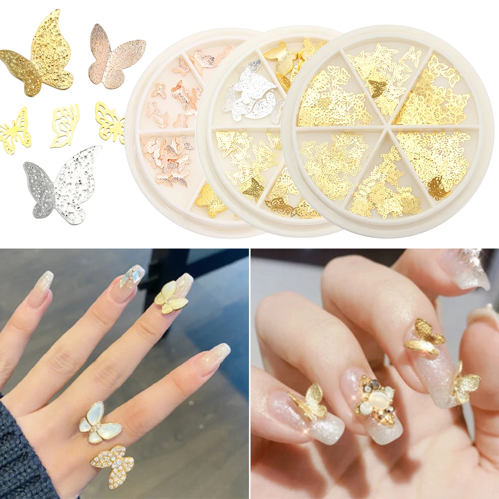 1 колесо 3D в форме бабочки ломтик сплав украшения для ногтей, блестящие серьги-гвоздики бабочки цвета: золотистый, серебристый металлические отличительные знаки хлопья сделай сам украшения для ногтей Декор